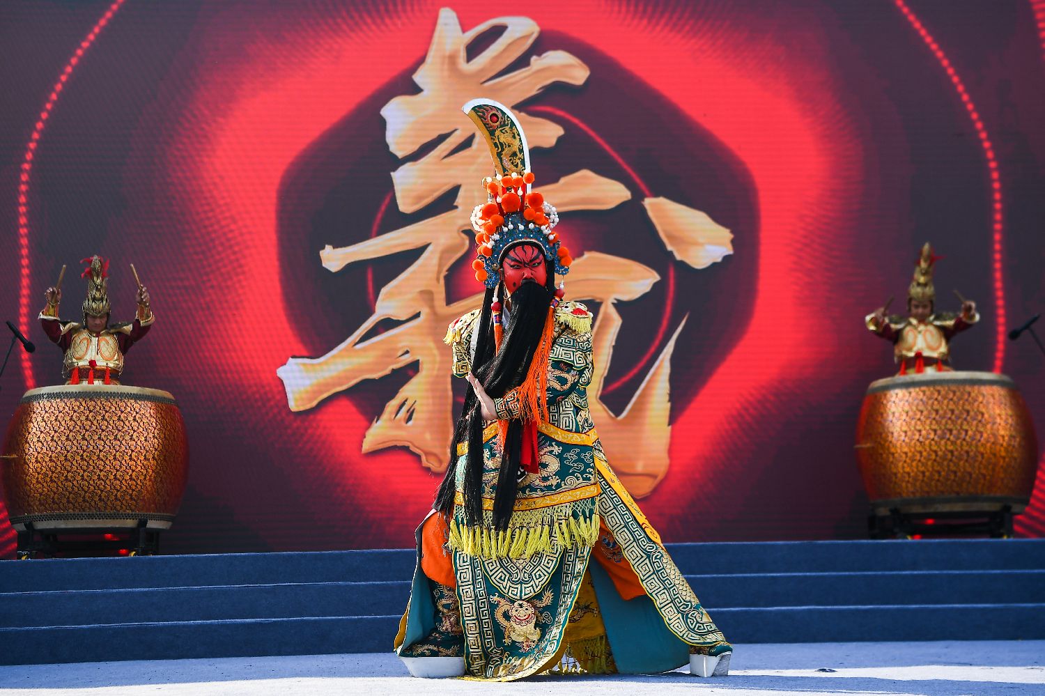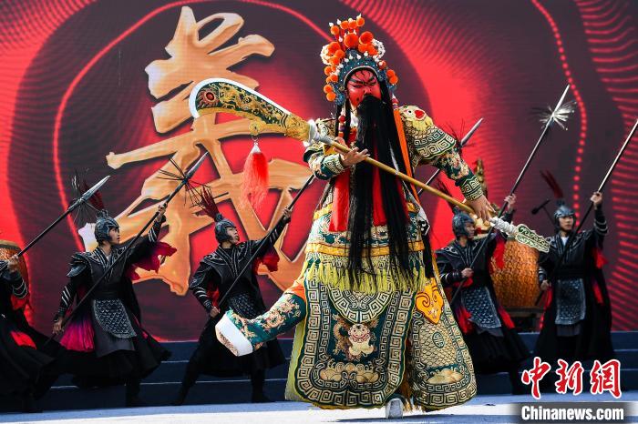 9月23日,山西运城第35届关公文化旅游节在关公故里文化旅游景区开幕。图为开幕式上《关公出征》表演。中新社