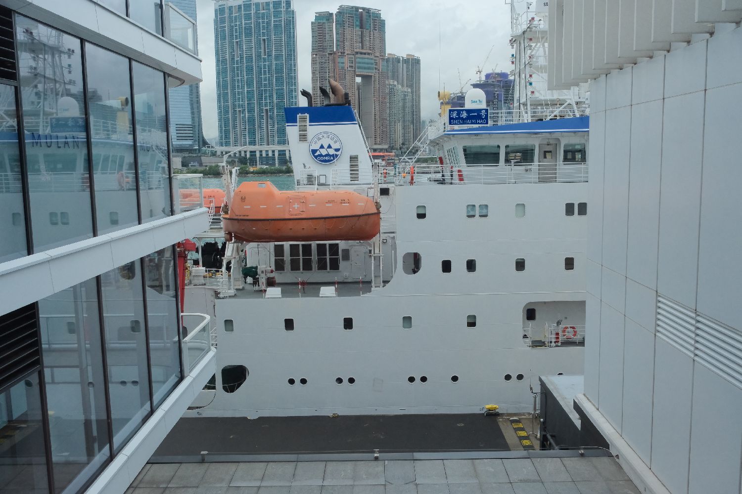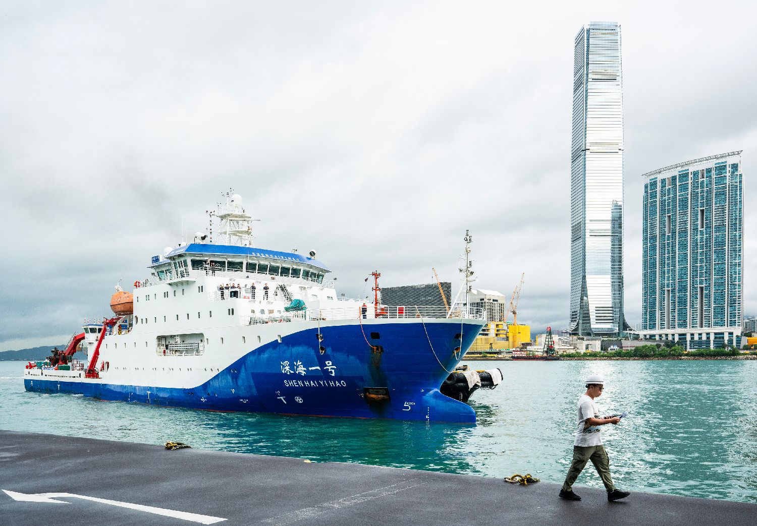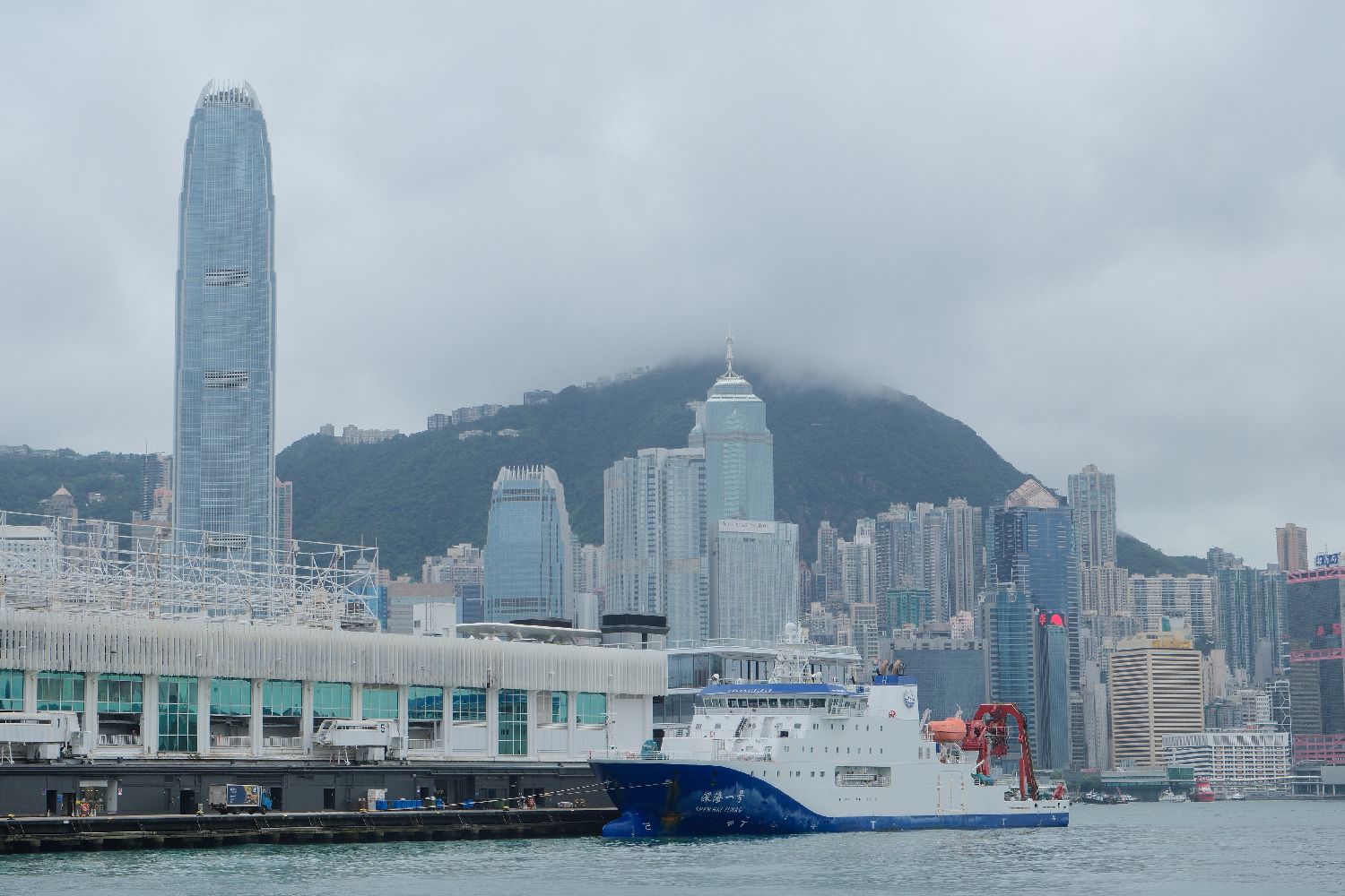 “深海一号”科考船驶向尖沙咀码头。中新社