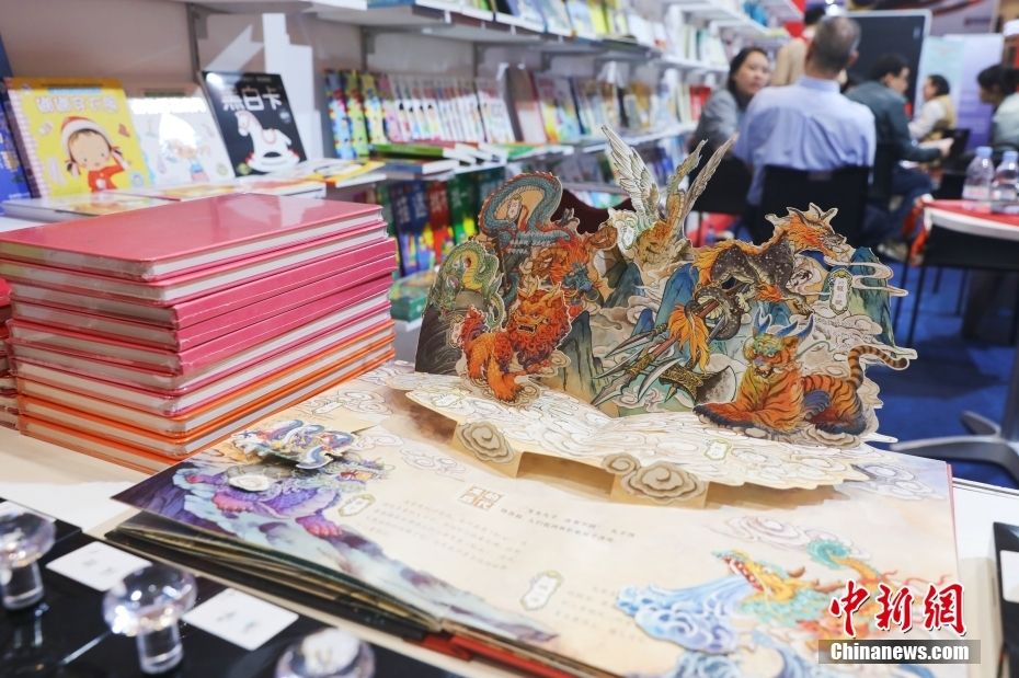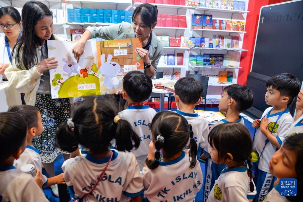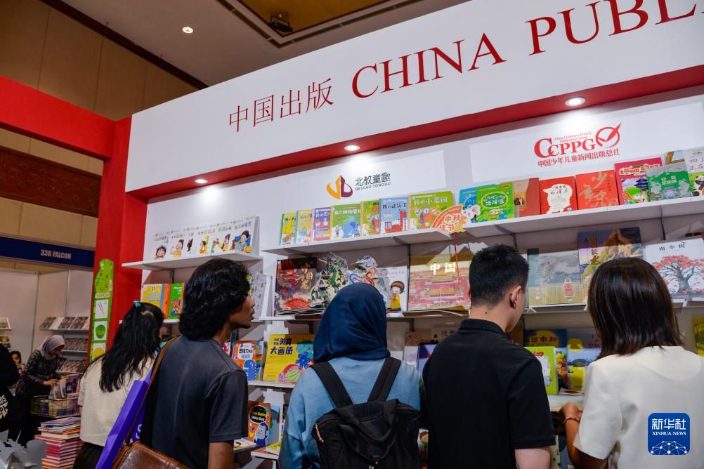 小朋友参观印尼国际书展中国出版代表团展台。新华社