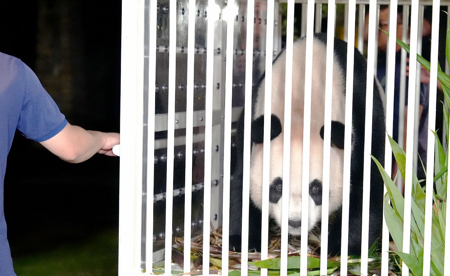大熊猫准备离开香港国际机场,前往香港海洋公园的新家(港府新闻处图片)。 香港中通社图片
