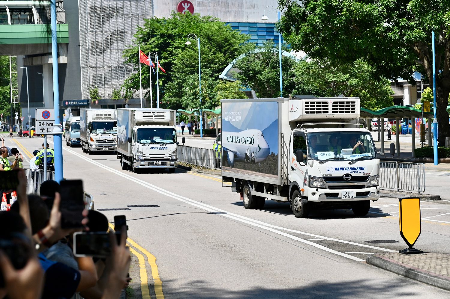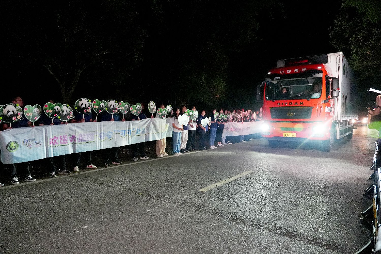 两只大熊猫由车队送至香港海洋公园。中新社