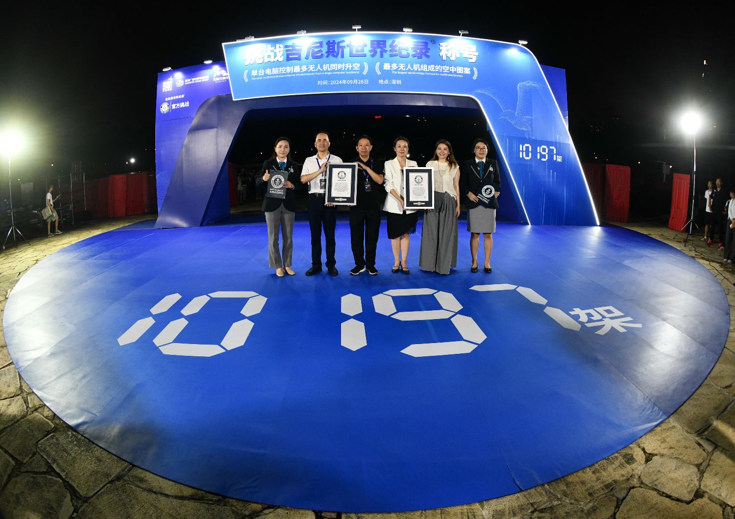 9月26日,在深圳湾举行的无人机表演凭借10197架无人机创造了“单台电脑控制最多无人机同时升空”“最多无人机组成的空中图案”两项吉尼斯世界纪录。