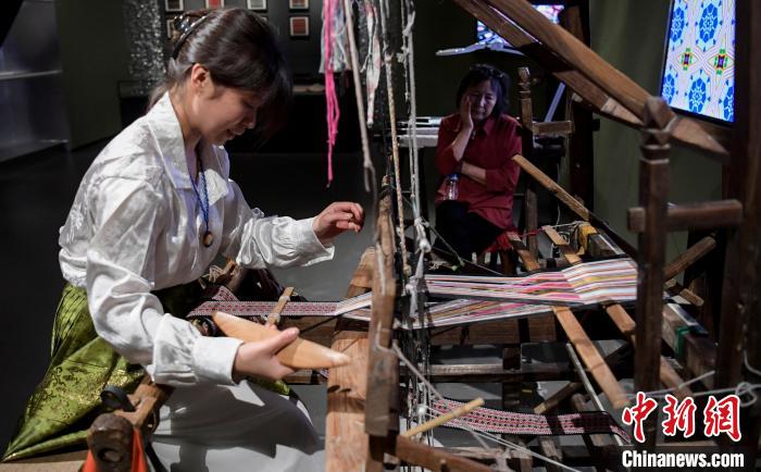 9月30日,技工展示鲁锦织造技艺。中新网