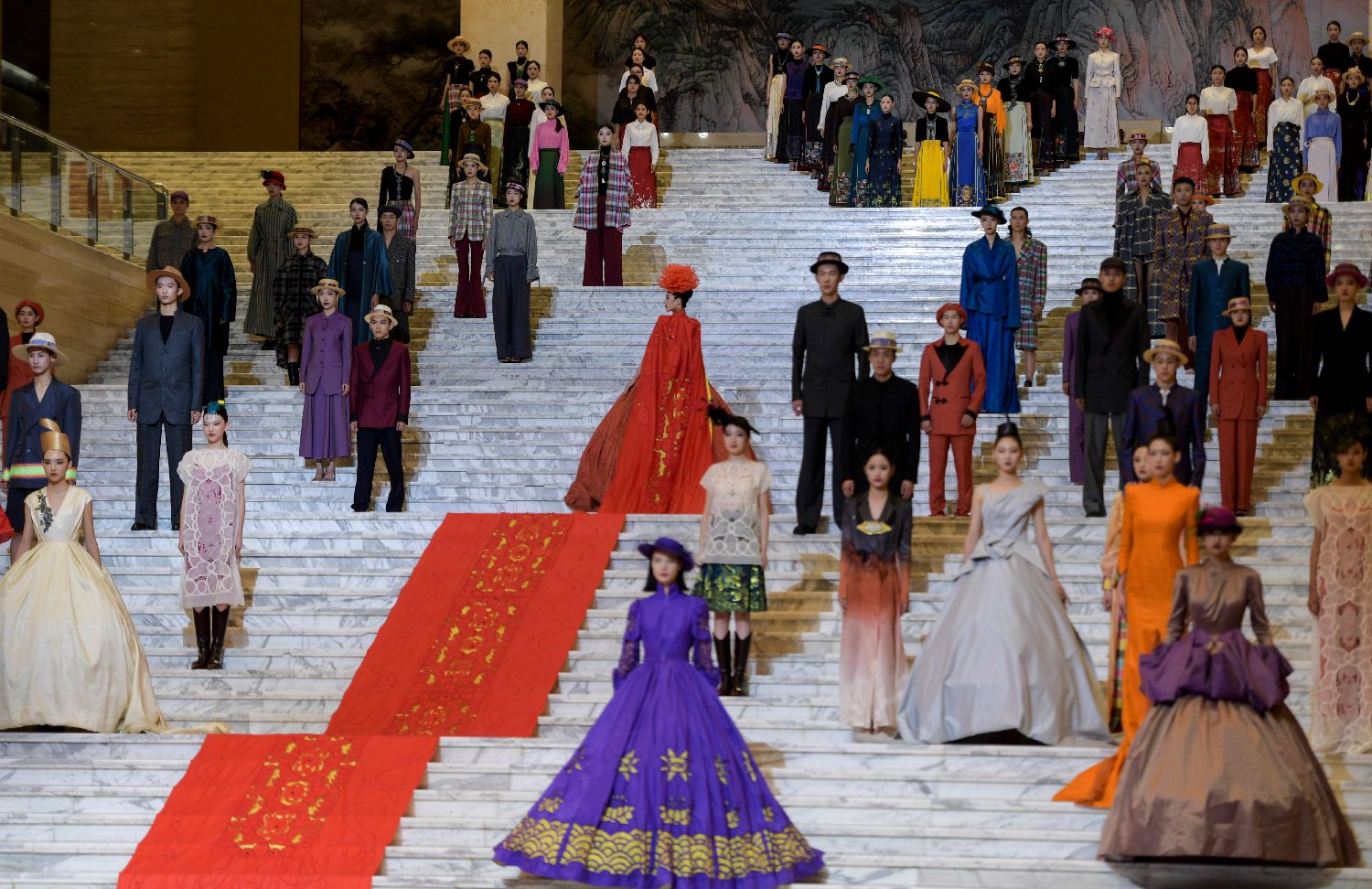 9月30日,模特们展示“鲁锦鲁绣”新品服装。中新社
