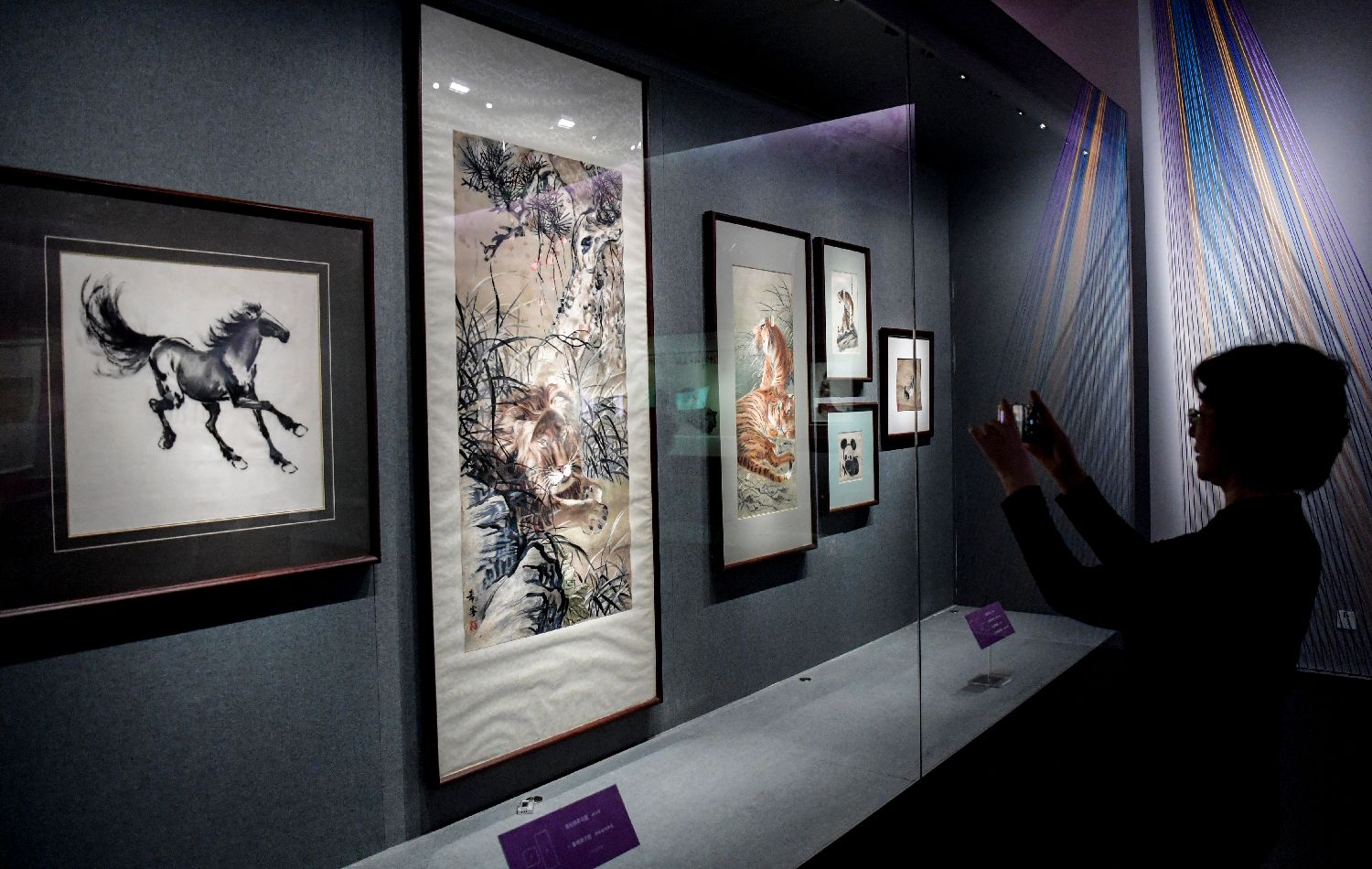 9月30日,观众参观发丝绣“奔马图”(左一)。中新社