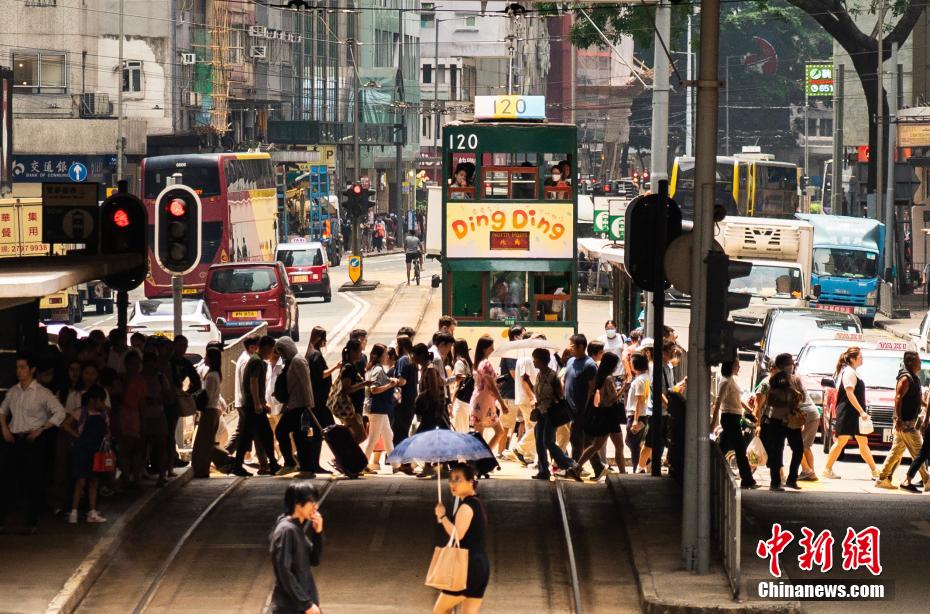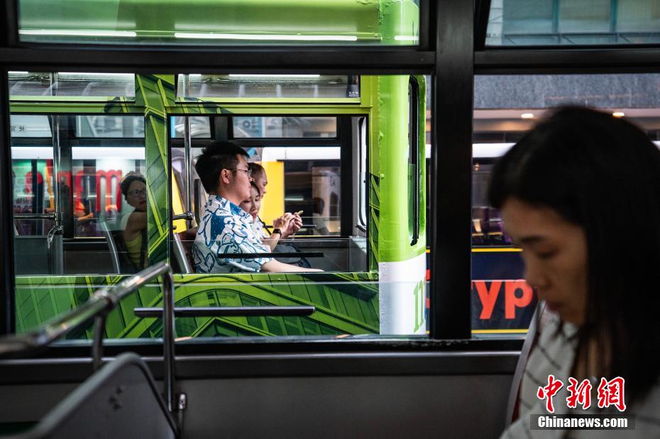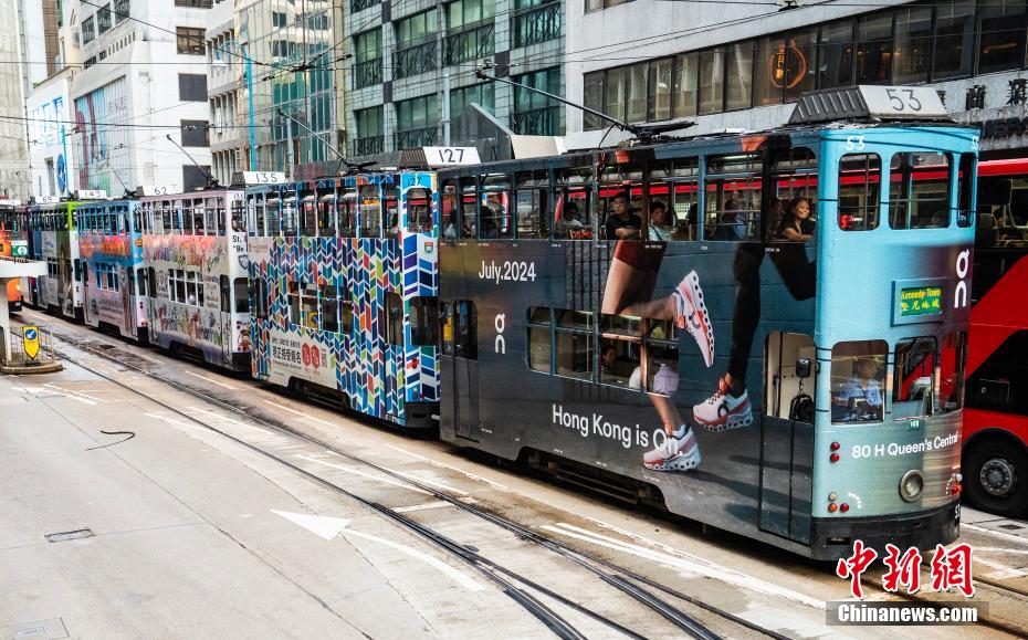 如今,投入运营的电车达165辆,在6条主要线路上、120个车站之间平均每天运送20万人次的乘客。2021年7月30日,香港电车被吉尼斯世界纪录认证为“最大的服务中的双层电车车队”。图为湾仔庄士敦道的一个电车站台展示香港电车的老照片。