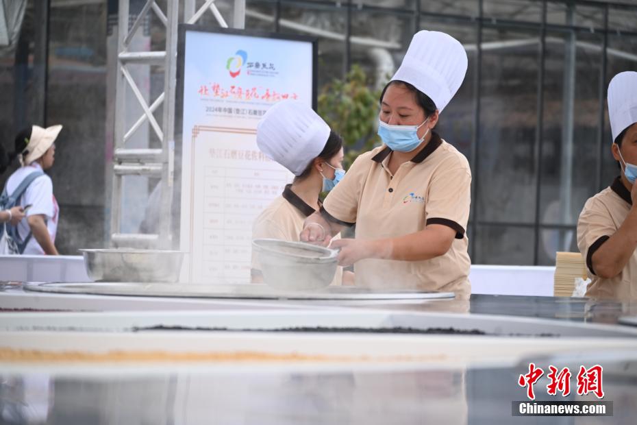 工作人员在制作豆花。
