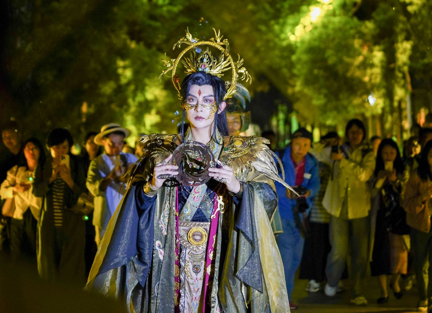 9月30日,为迎接即将到来的十一假期,成都金沙遗址博物馆大型跨界文旅活动“夜游金沙·穿越古蜀——博物馆情景式导览演出秀”进行内测彩排,该演出在10月1日至7日每晚7时30分上演。图为9月30日,在金沙遗址博物馆,演员在“夜游金沙·穿越古蜀——博物馆情景式导览演出秀”中表演。