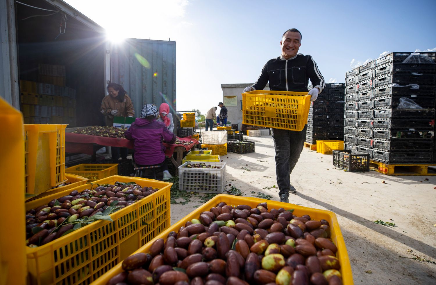 9月30日,在宁夏灵武市东塔镇马场湖长枣种植基地内,农户在分拣长枣。