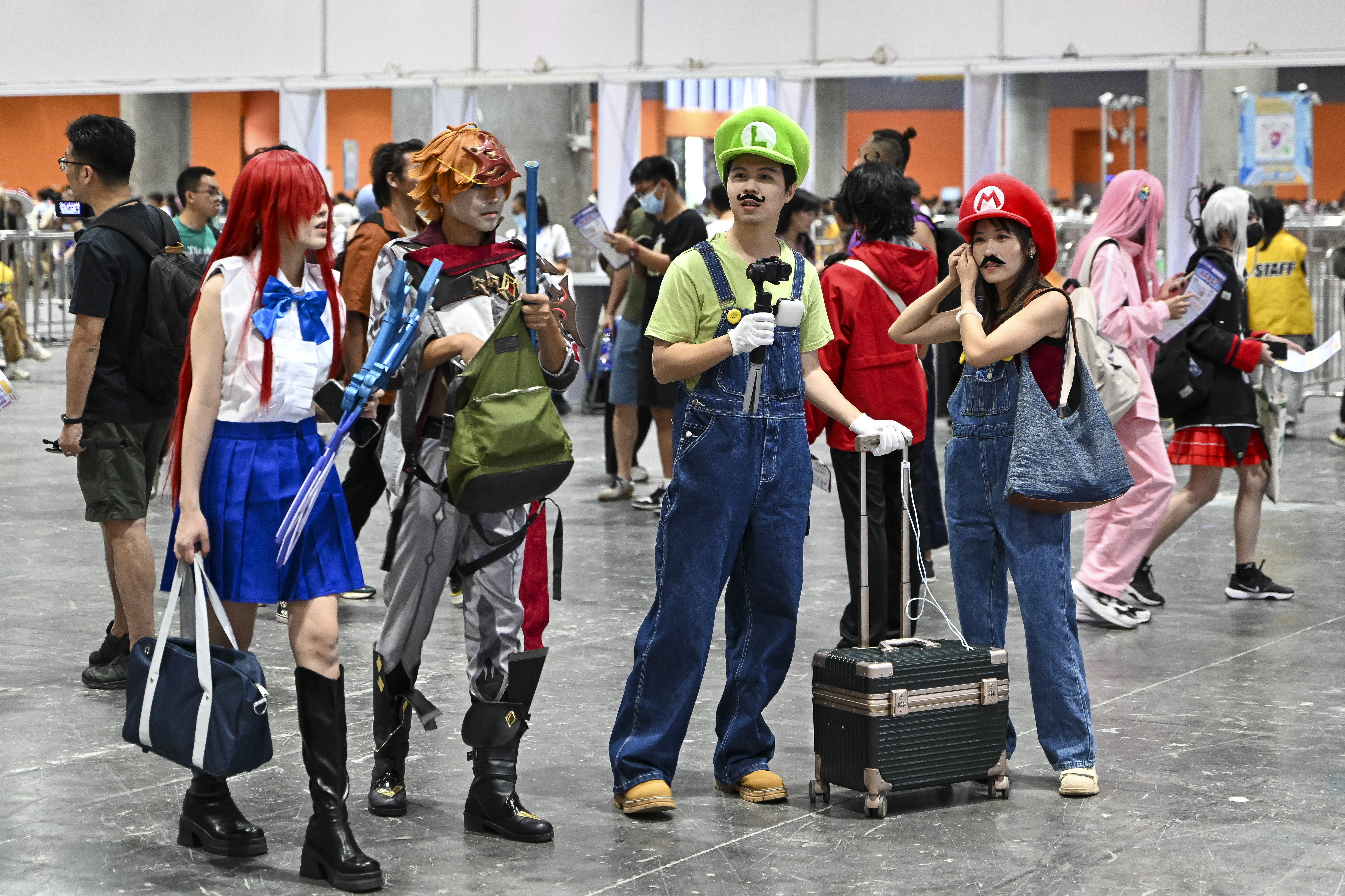 10月2日,动漫游戏爱好者打扮成动漫游戏形象参加展会。中新社