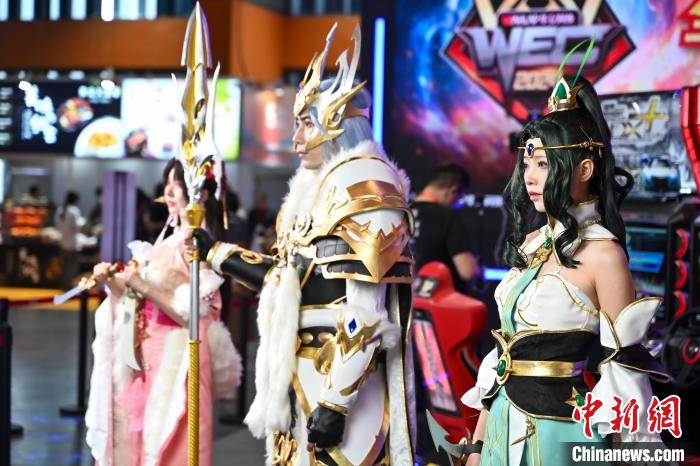 动漫游戏爱好者打扮成动漫游戏形象参加展会。中新网