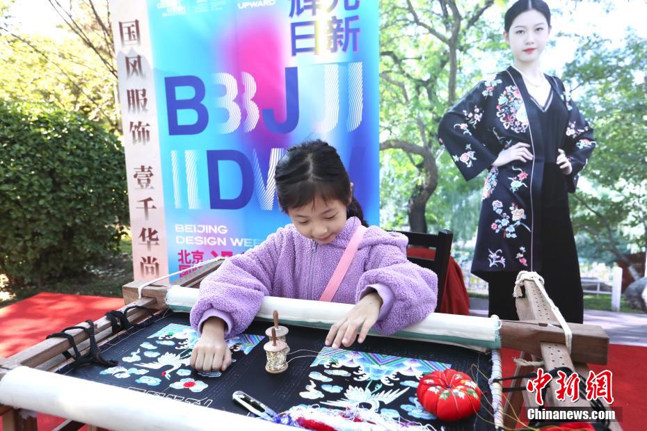 10月3日,小朋友体验京绣。中新网