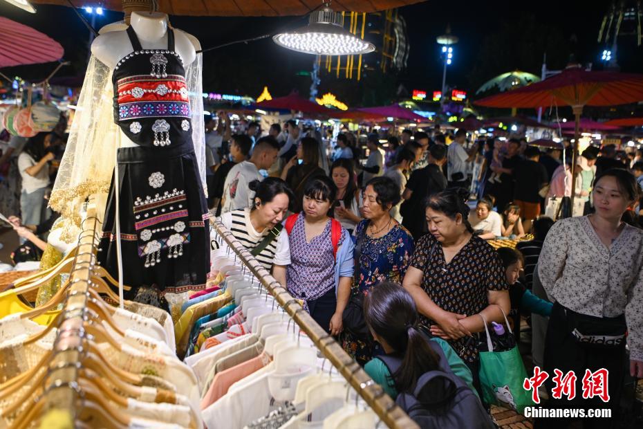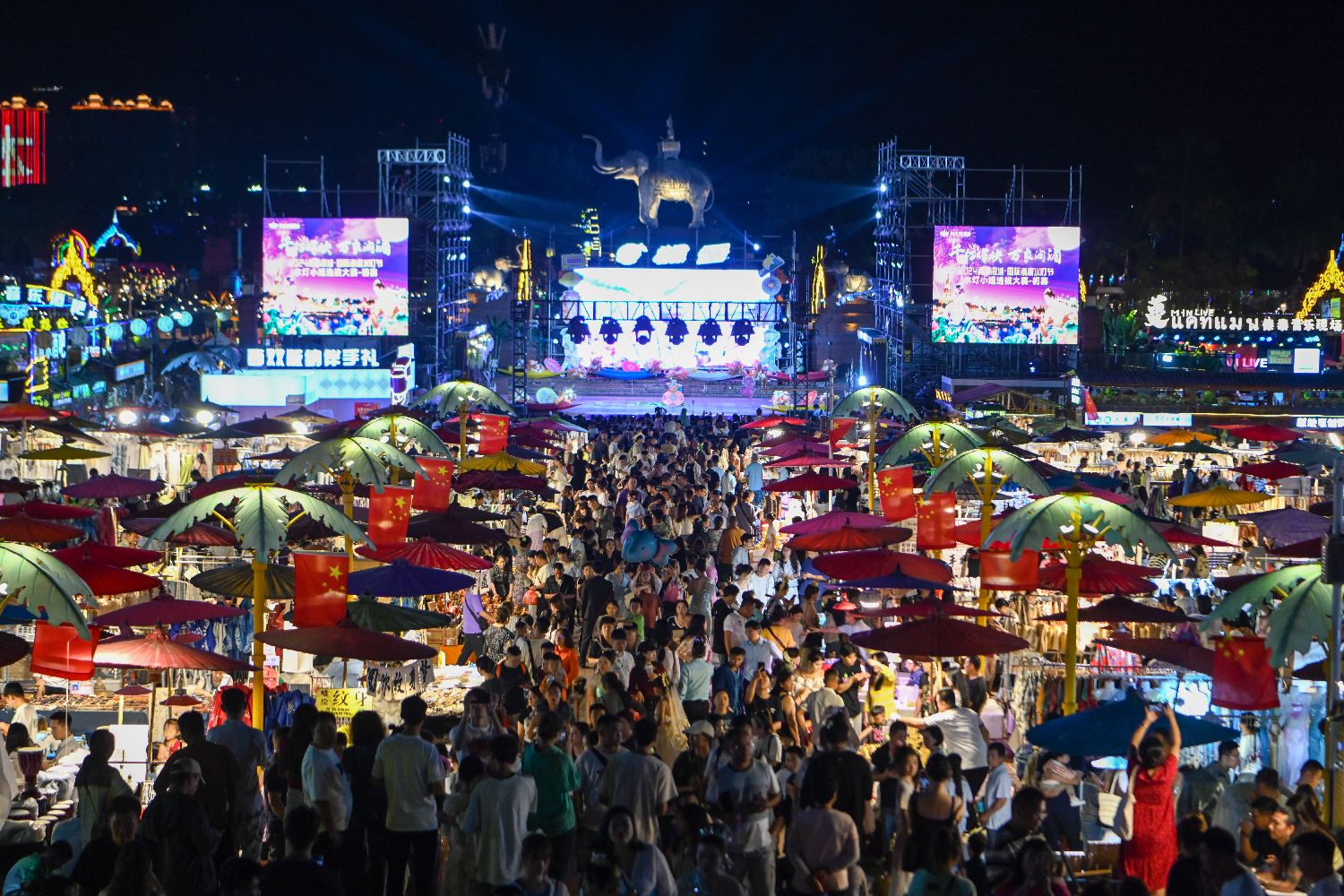 10月2日,云南西双版纳傣族自治州景洪市告庄西双景星光夜市人头攒动。中新社