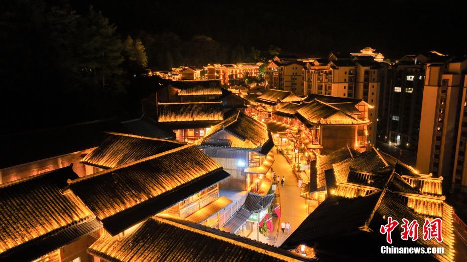 10月3日,重庆酉州古城夜景璀璨,吸引民众夜游古城。中新网