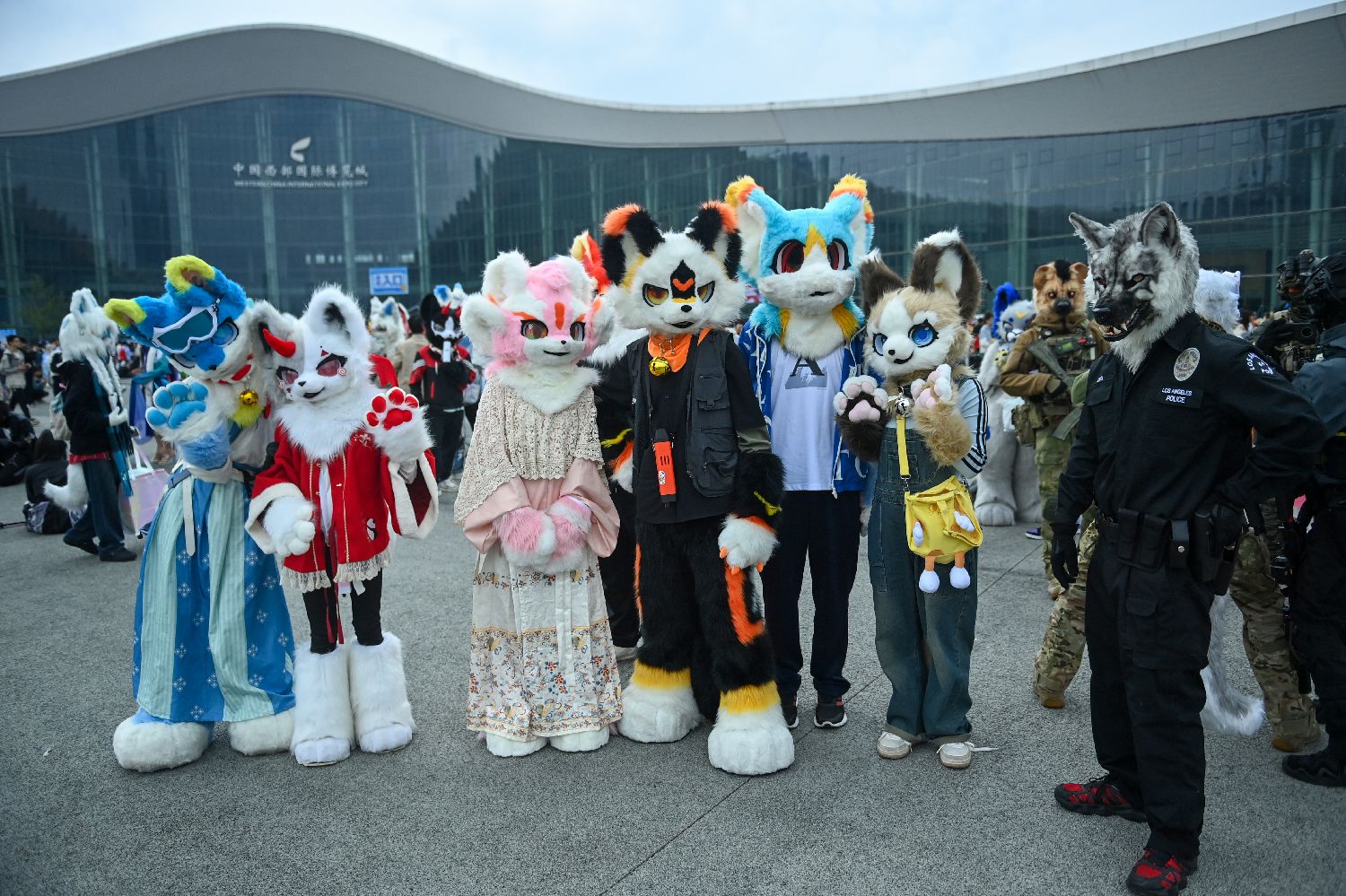 10月5日,活动现场动漫人物组合合影留念。中新网