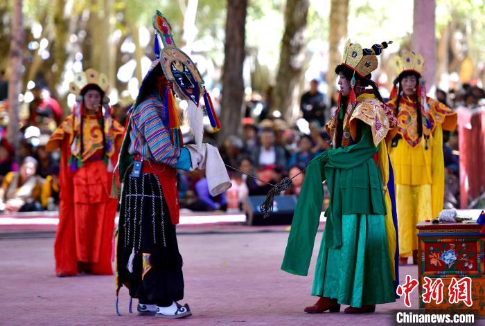 10月7日,传统八大藏戏之一《诺桑王子》在西藏自治区日喀则市扎什伦布寺内上演,吸引僧俗民众观看。中新网