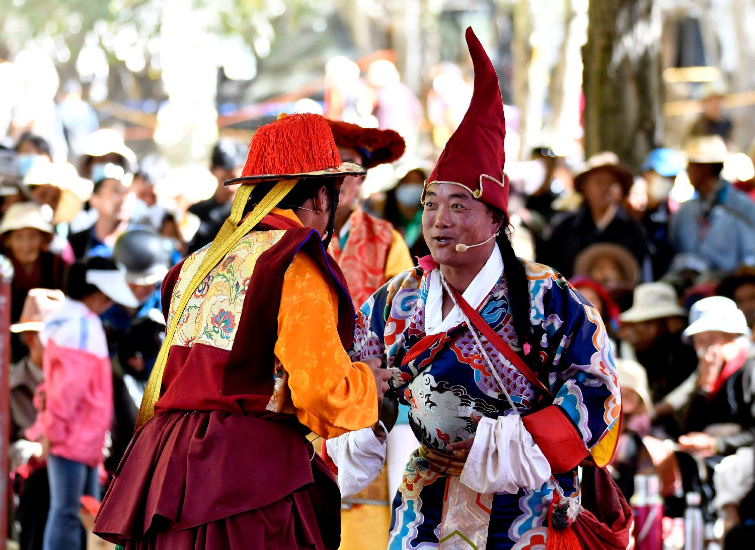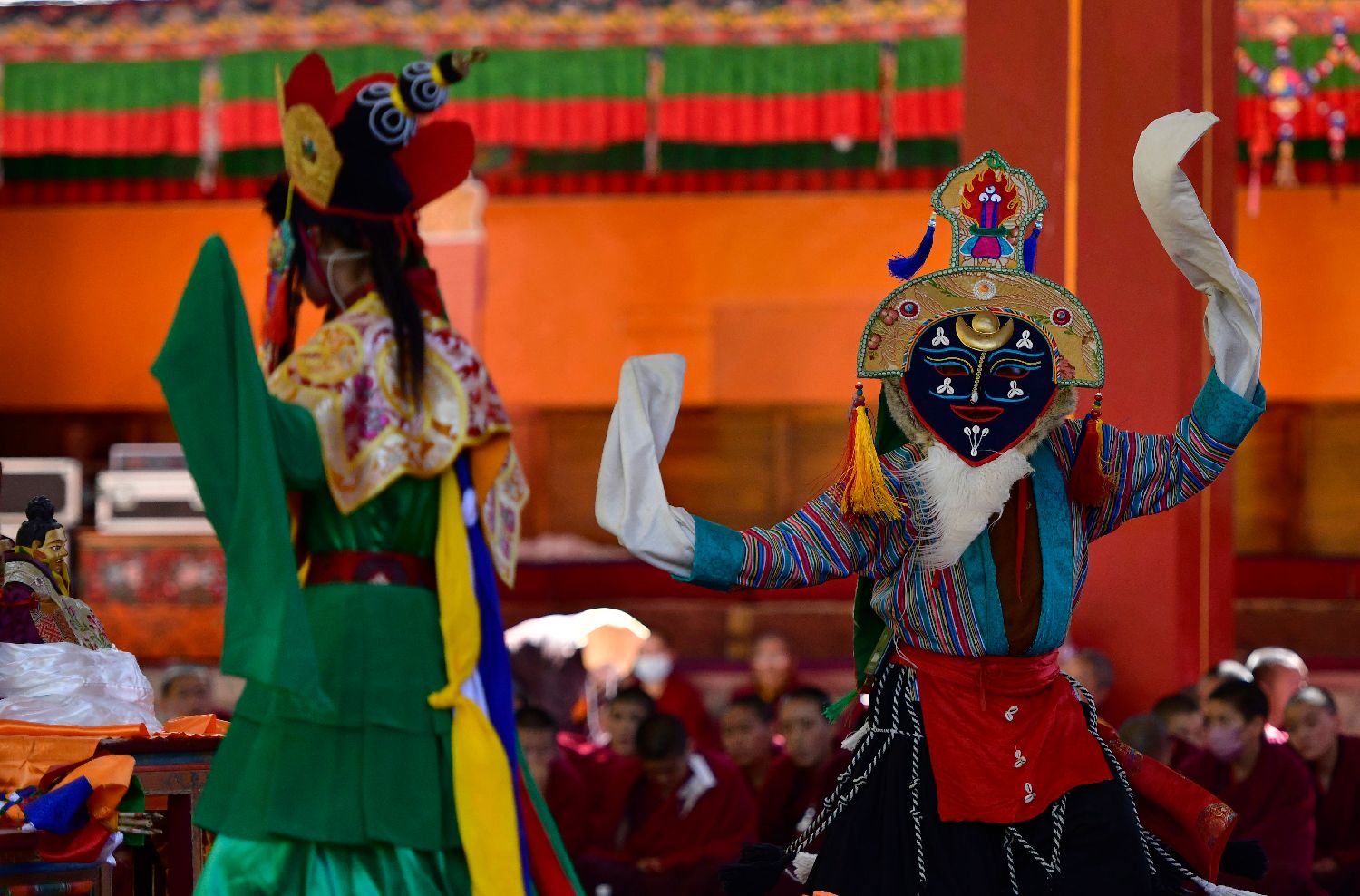 10月7日,传统八大藏戏之一《诺桑王子》在西藏自治区日喀则市扎什伦布寺内上演,吸引僧俗民众观看。中新社