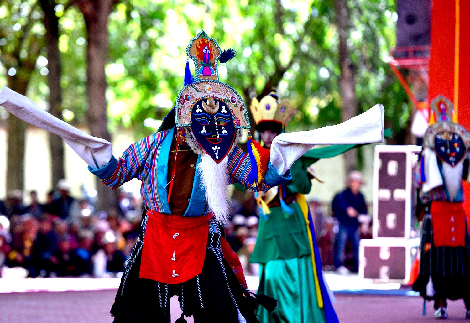 10月7日,传统八大藏戏之一《诺桑王子》在西藏自治区日喀则市扎什伦布寺内上演,吸引僧俗民众观看中新社