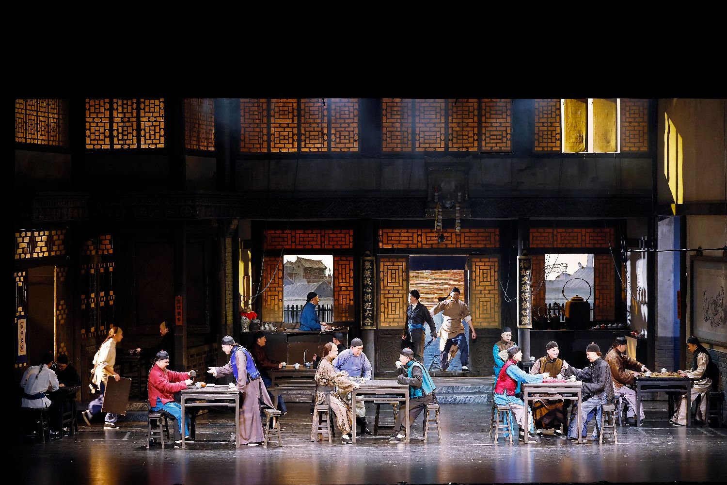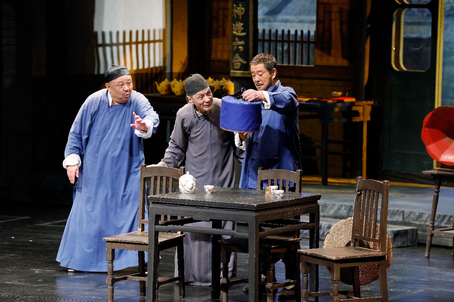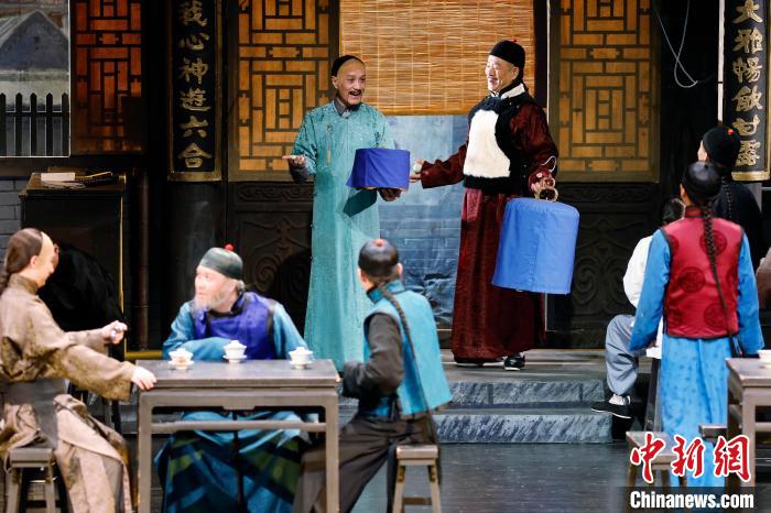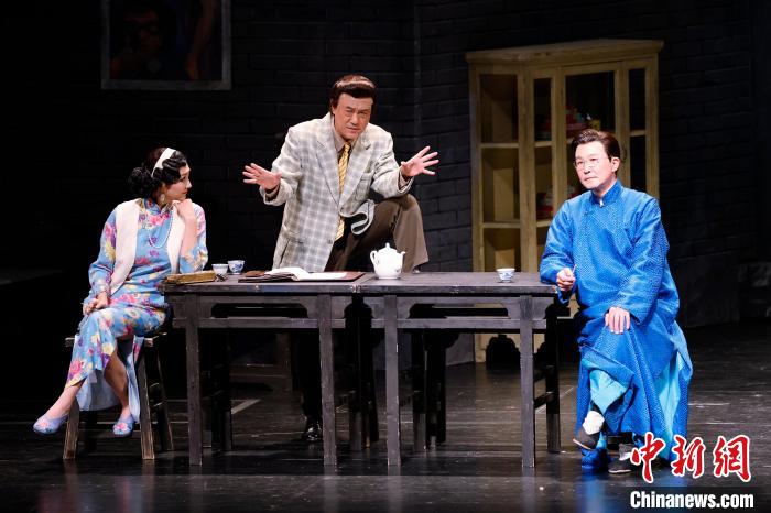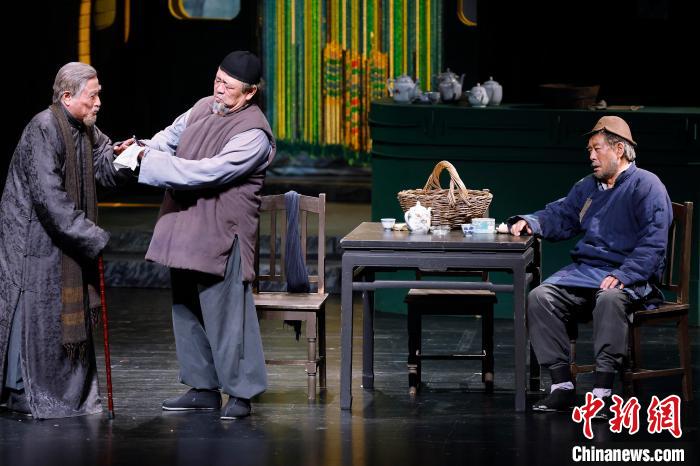 10月13日,北京人民艺术剧院演员在上音歌剧院上演老舍的《茶馆》。中新网