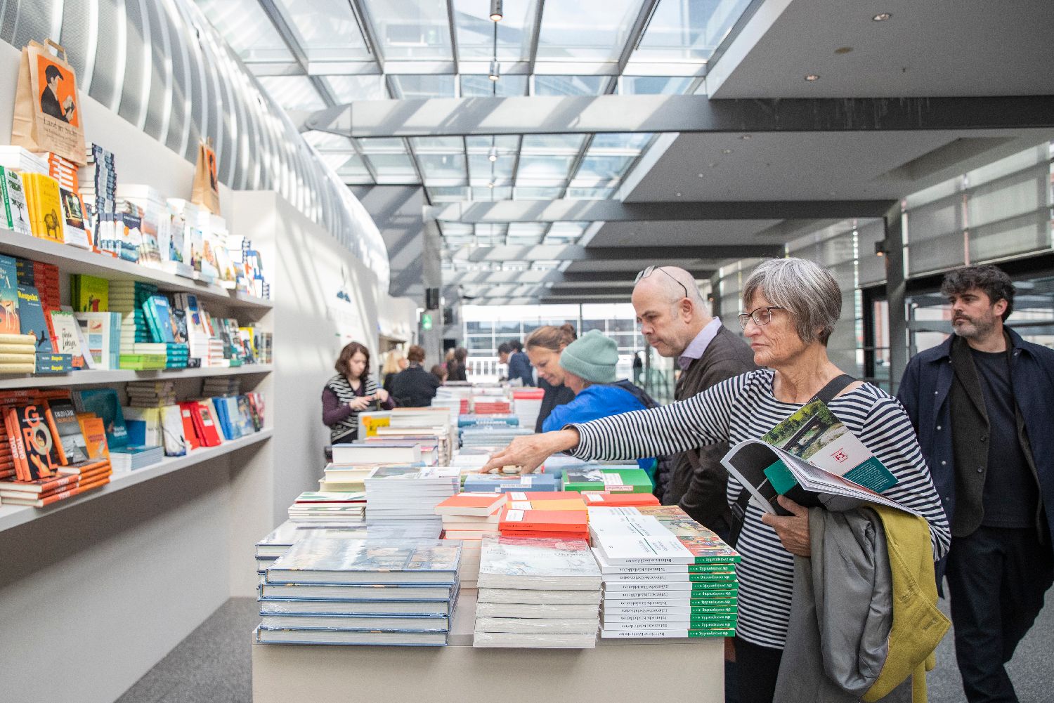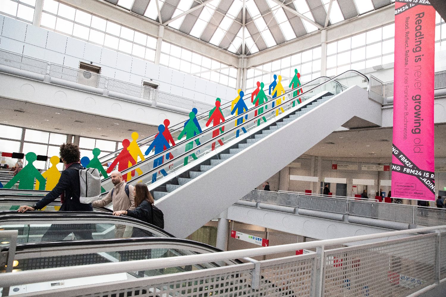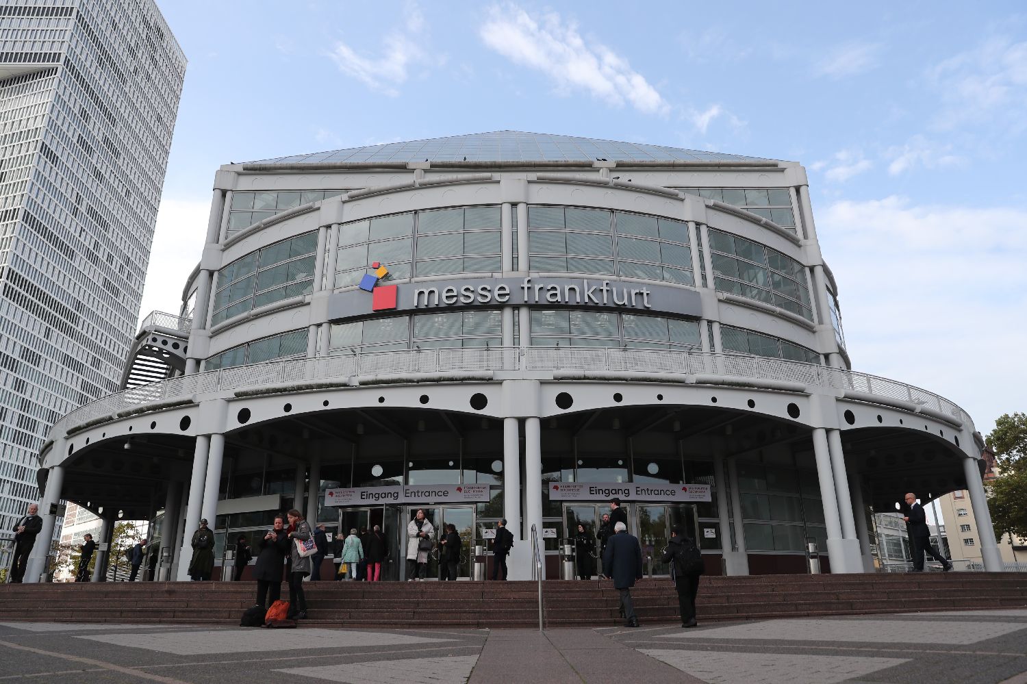 10月15日晚,第76届法兰克福书展在德国法兰克福会展中心开幕。书展首次设立“亚洲舞台”,中国出版机构携大量图书亮相。图为10月16日,人们走进德国法兰克福书展展馆。