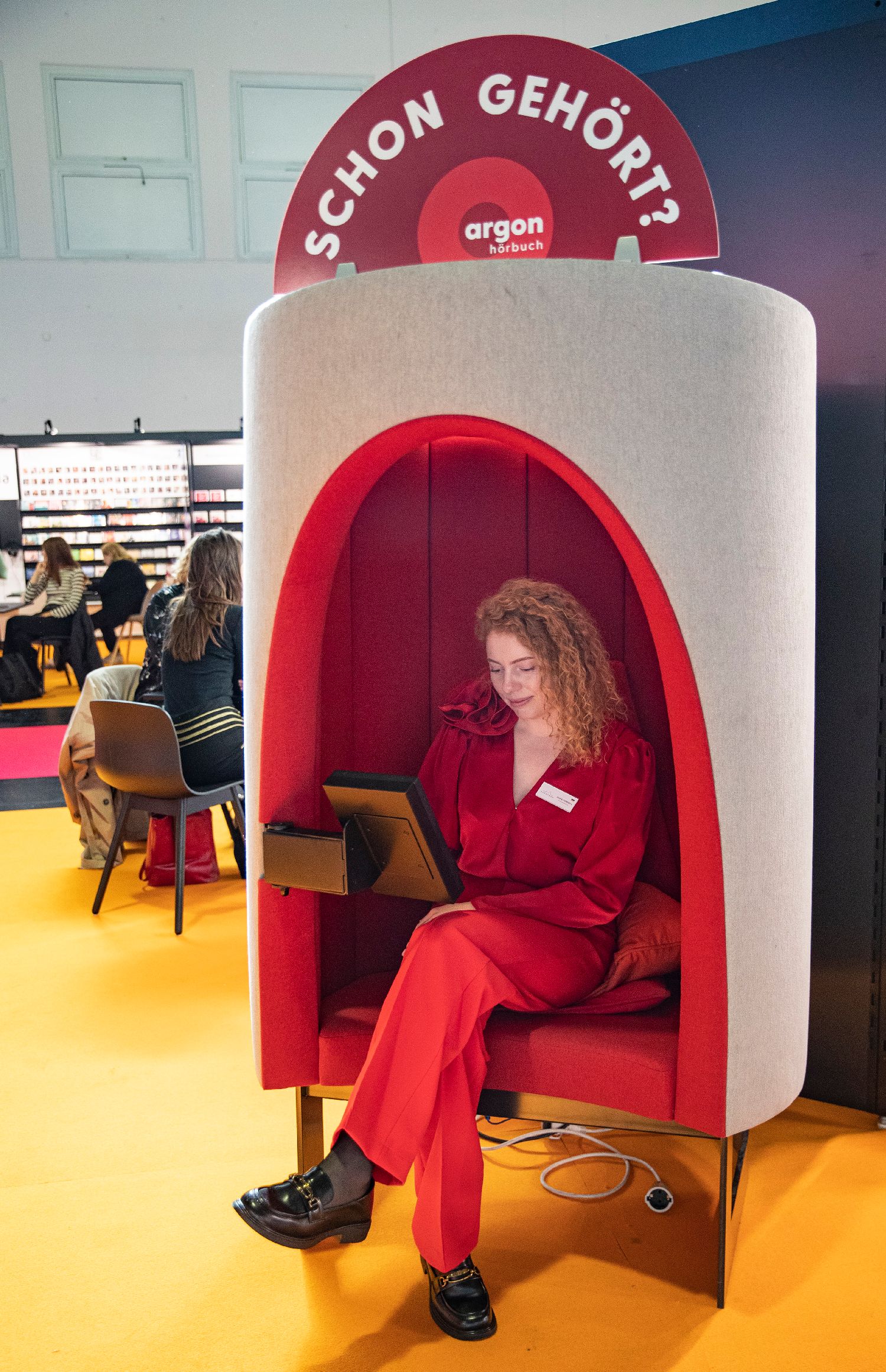 10月16日,一名女子在德国法兰克福书展上体验有声书。