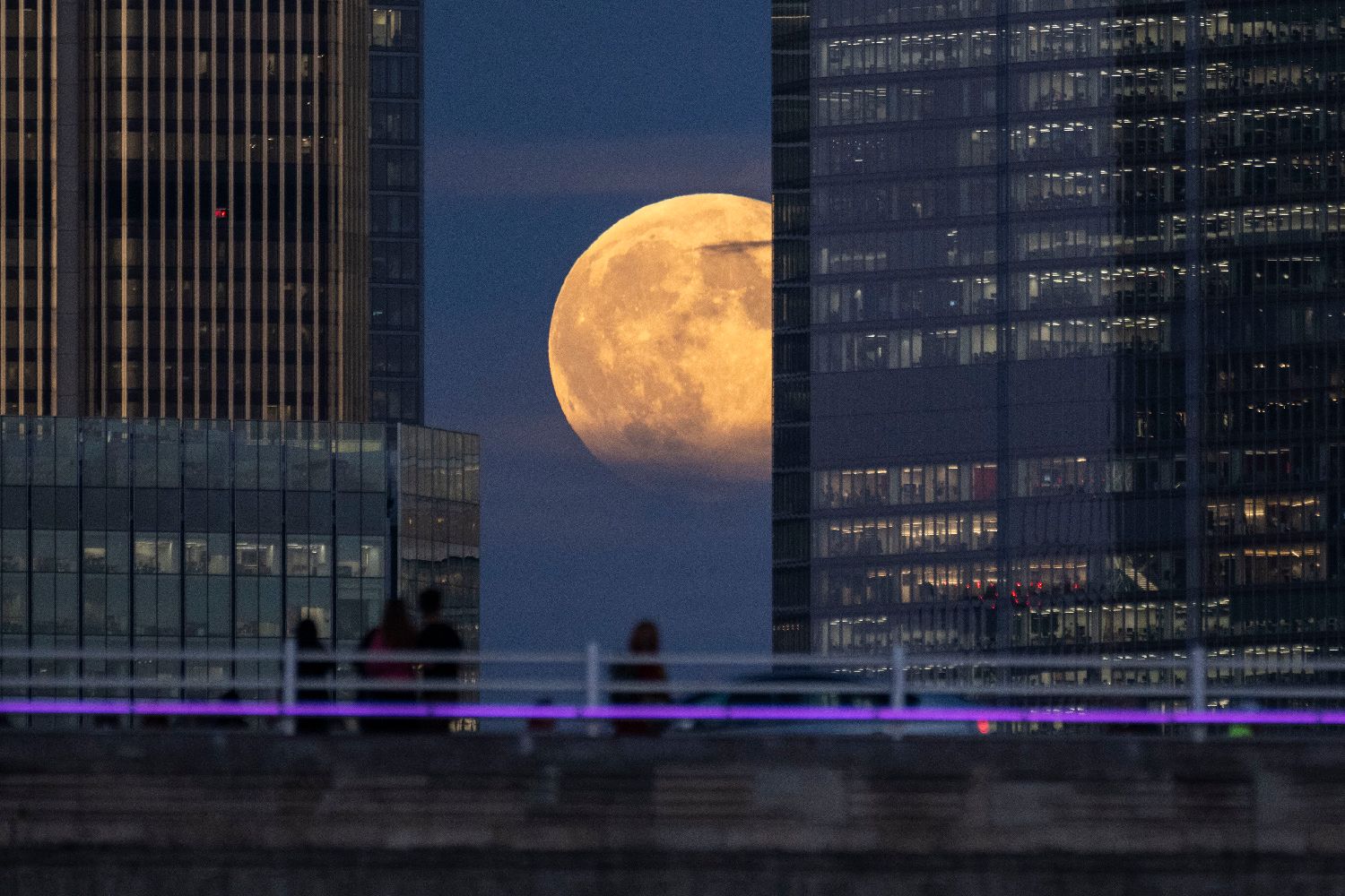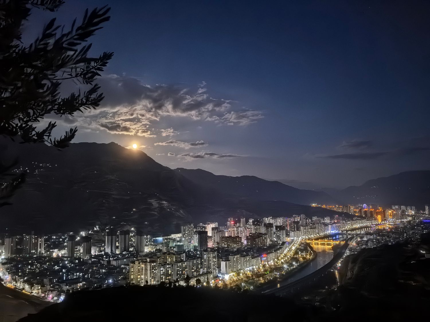 10月17日晚,一轮明月从甘肃省陇南市武都区旁的山峦间升起。17日19时26分,月球迎来满月时刻,民众迎来今年离地球最近、最大的一轮明月。中新社