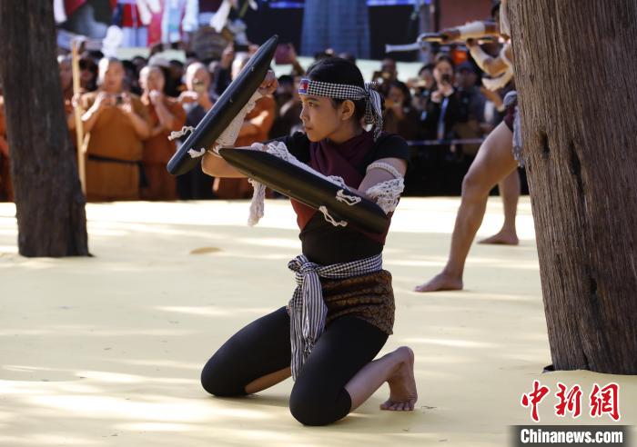 柬方运动员展演柬埔寨功夫。中新网