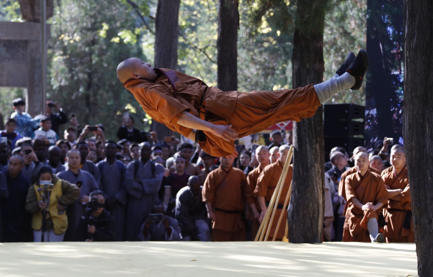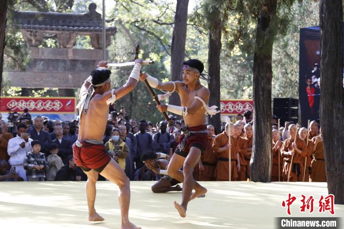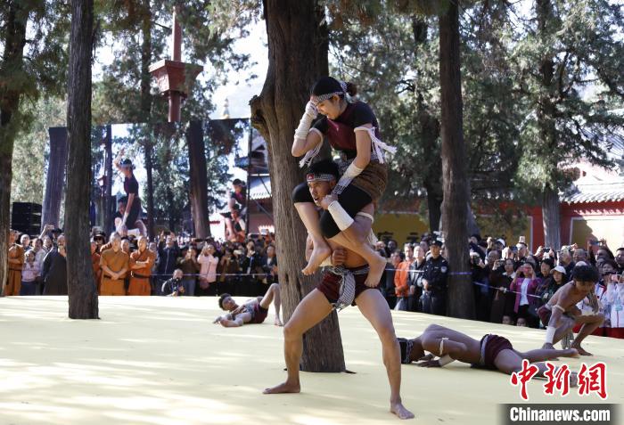 少林武僧展演少林绝学。中新网