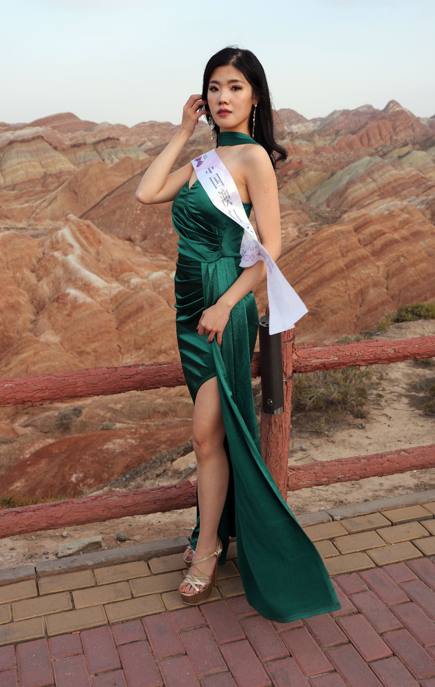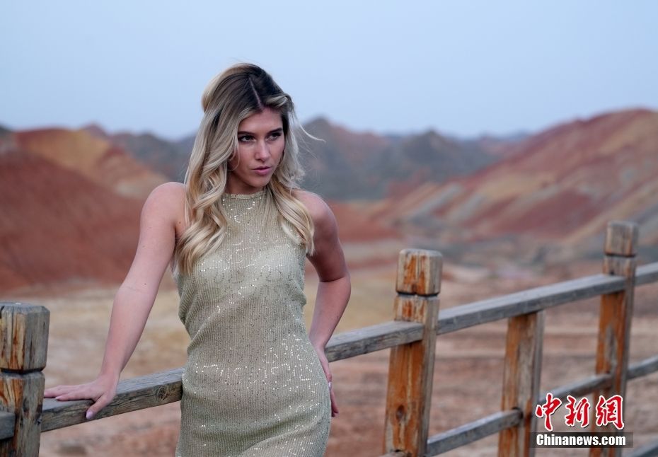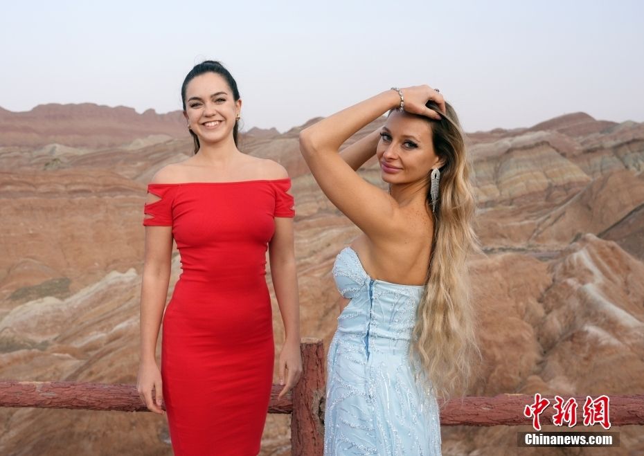 10月20日,“丝路明珠﹒彩虹张掖”2024丝路环球旅游盛典主题日采风拍摄活动举行。来自全球20多个国家和地区的45位佳丽分别前往张掖宾馆、兰亭府博物馆、金阳博物馆、黑河大桥、滨河九粮液文化旅游景区和七彩丹霞景区开展了采风活动。图为当日,2024丝路环球旅游小姐的参赛选手在甘肃张掖七彩丹霞采风拍摄。中新社