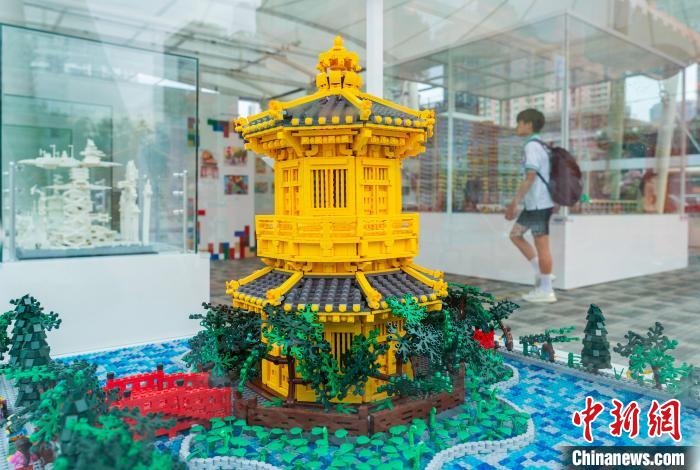 由乐高积木搭建的南莲园池模型。中新网