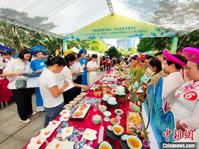 10月22日,广西东兴市中越人民友谊公园,国际药膳友谊赛上的药膳展示。中新网