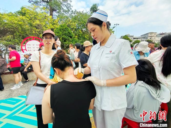 10月22日,在广西东兴市中越人民友谊公园,民众在体验火龙罐疗法。中新网