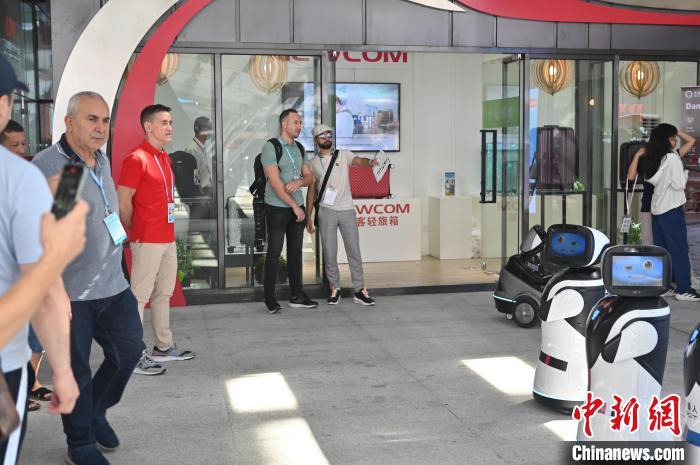 10月23日,机器人舞蹈吸引境外采购商观看。中新网