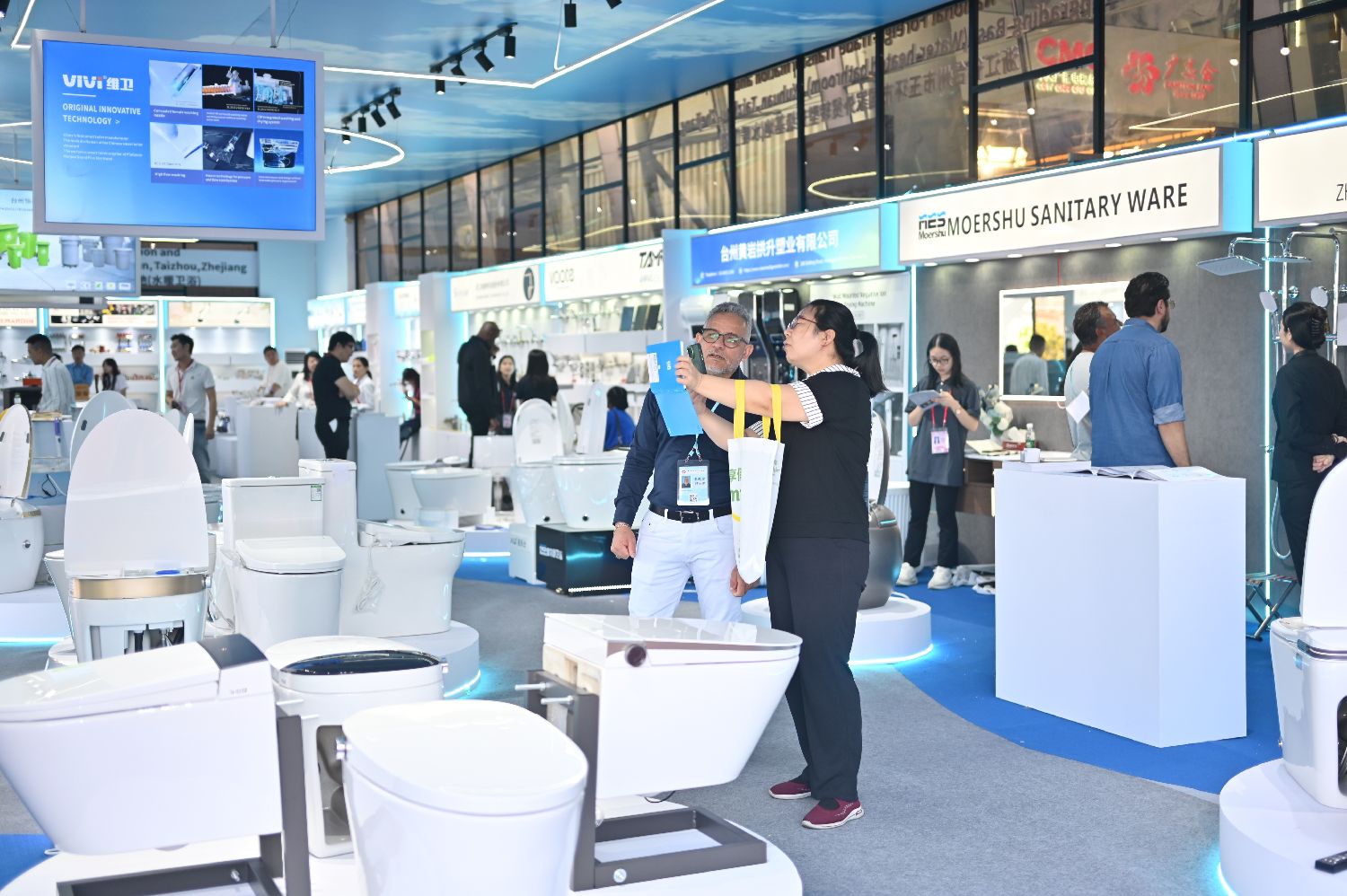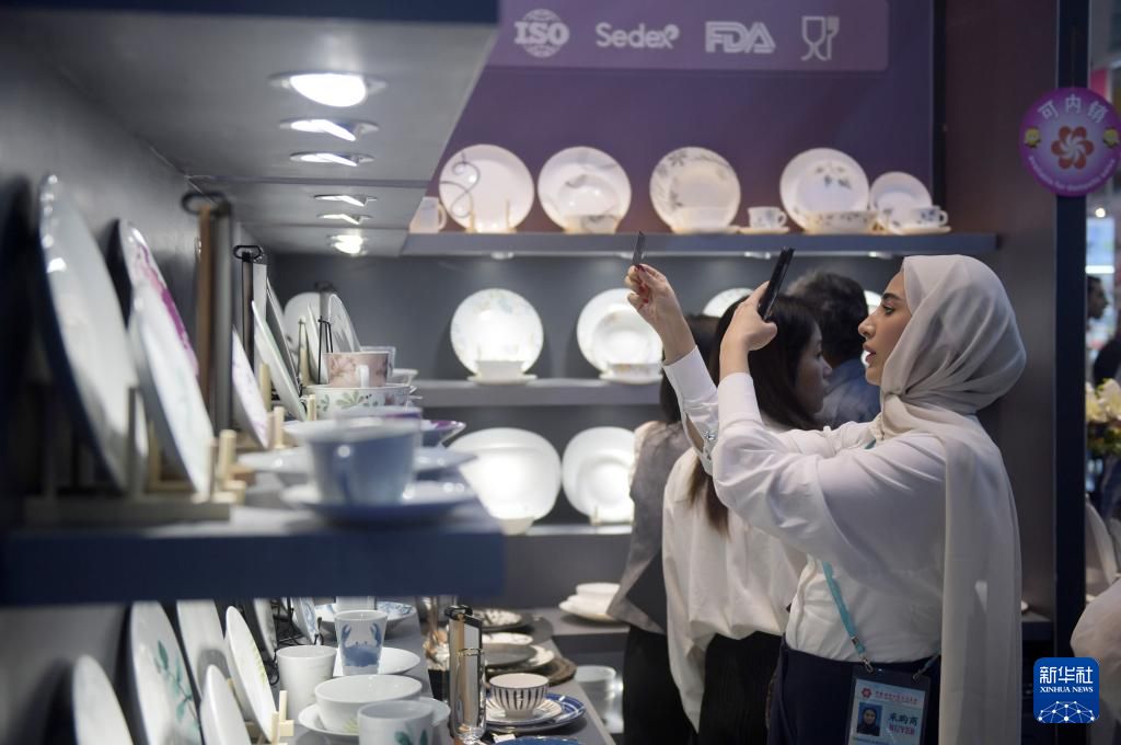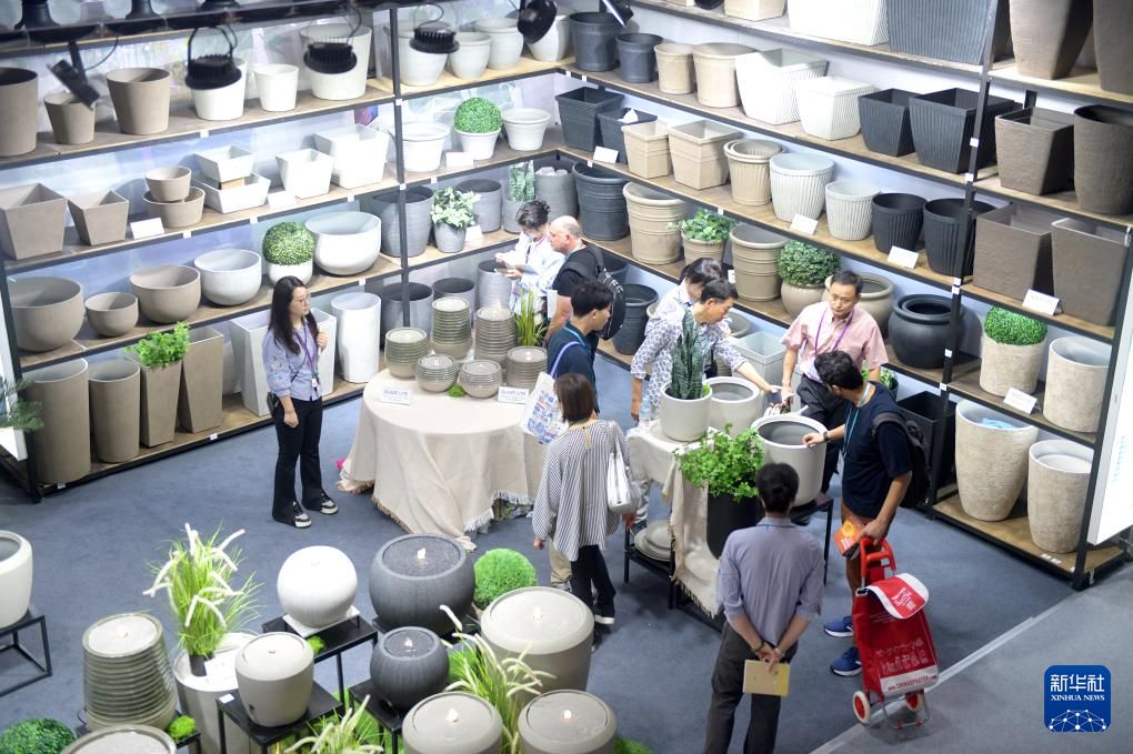 10月23日,在广东广州,第136届广交会第二期开展迎客。本届广交会第二期线下展展览总面积51.5万平方米,展位数量24739个,参展企业10040家,展览题材包括家庭用品、礼品及装饰品、建材及家具3个板块15个展区。中新社