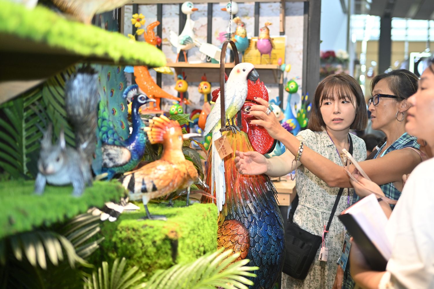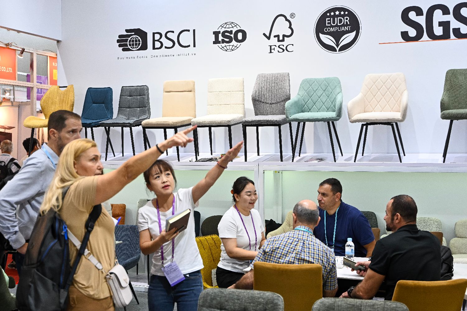 10月23日,采购商在室内家具展区内挑选产品。中新社