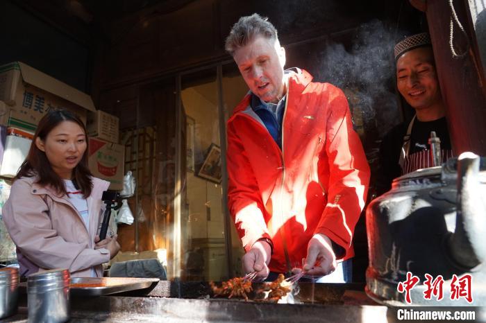海外嘉宾体验烤羊肉串。