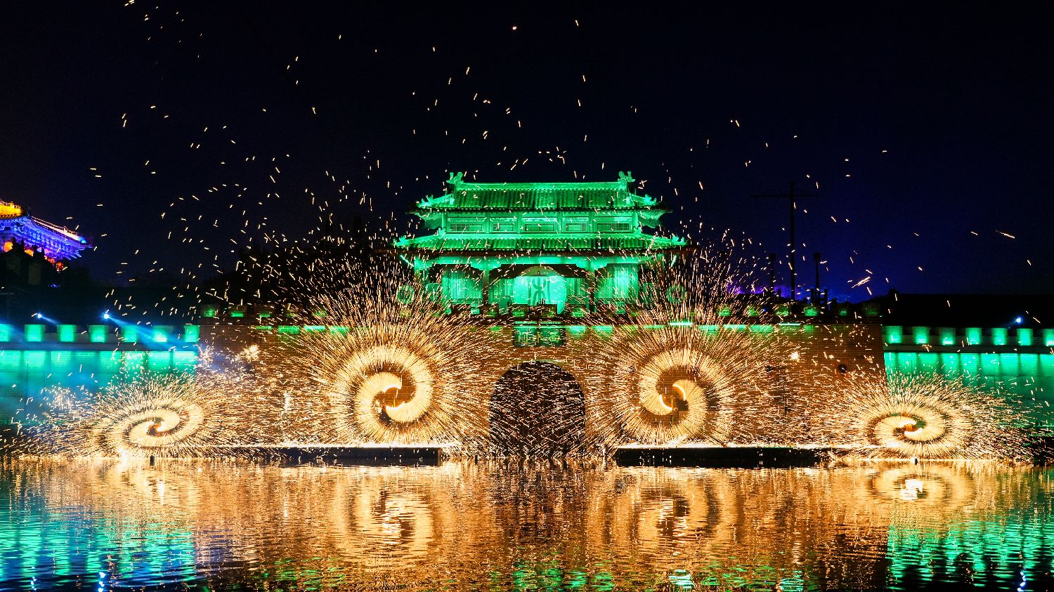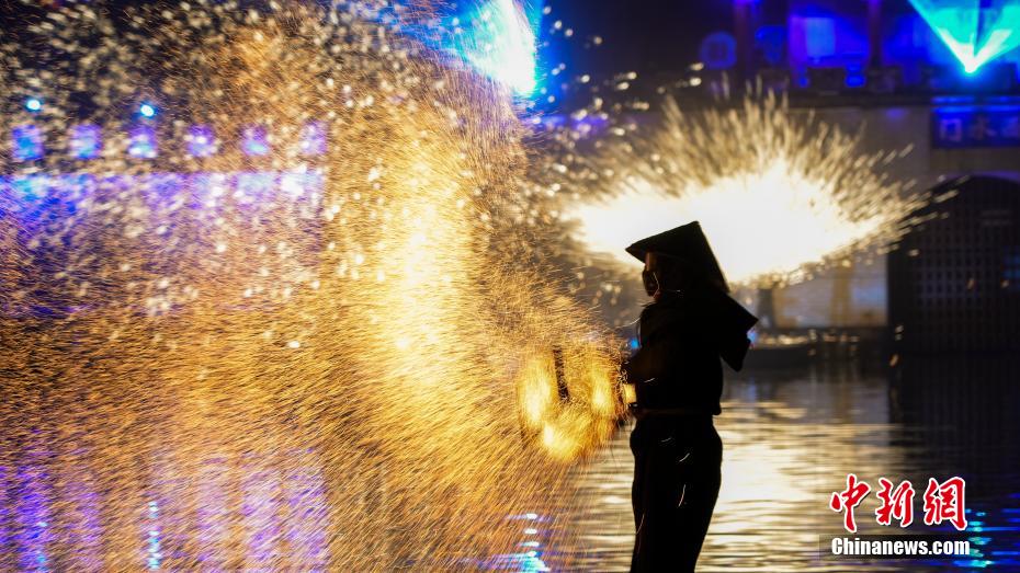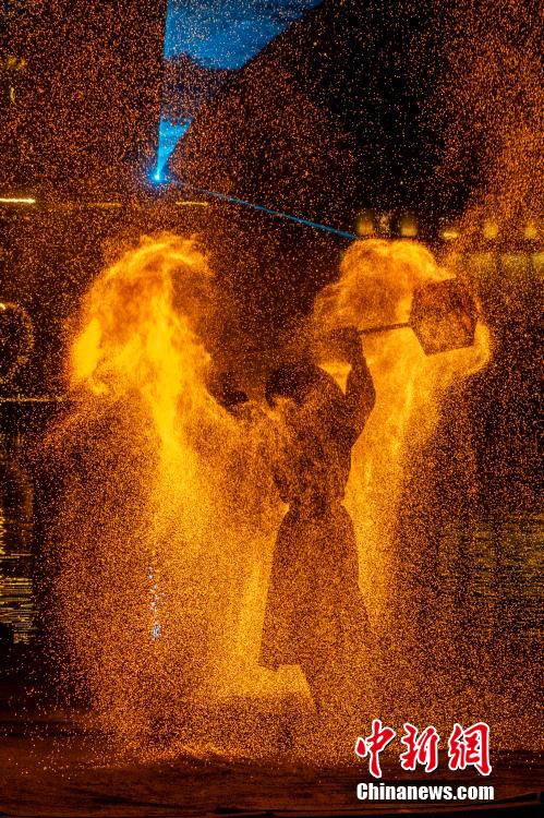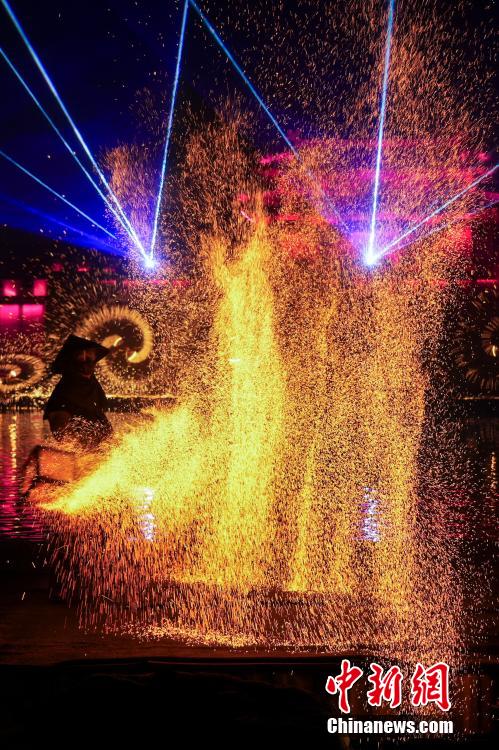 非遗火壶、打铁花同台绽放。中新网