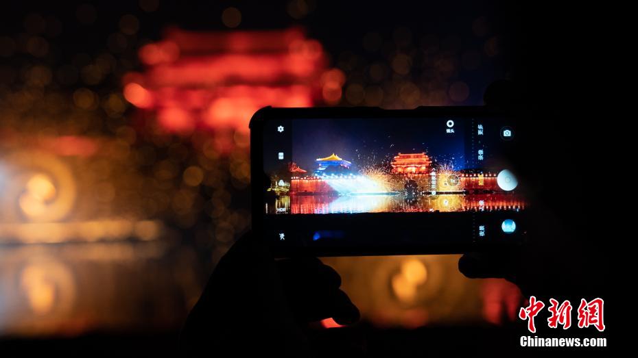 非遗技艺打铁花吸引游客拍摄。中新网