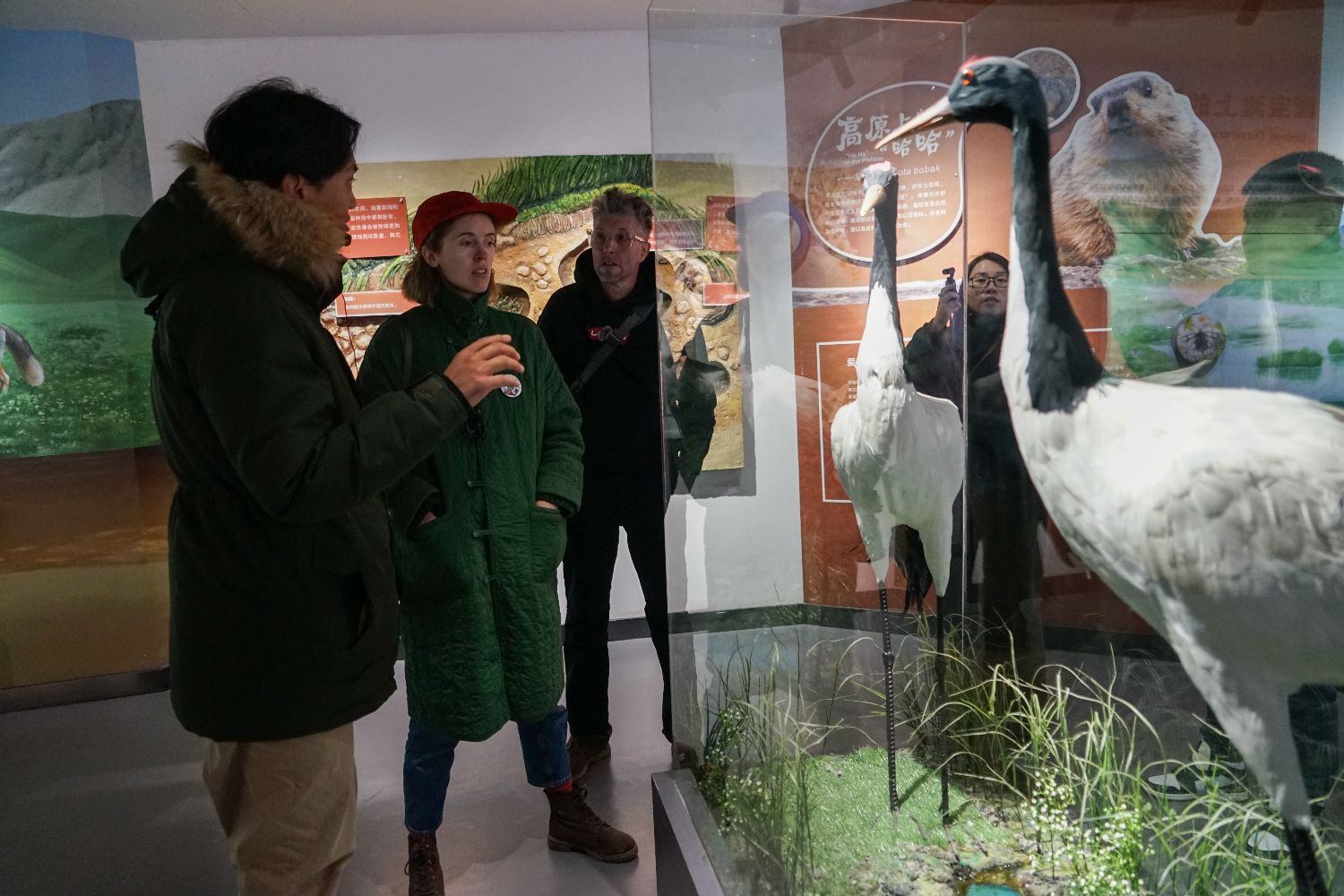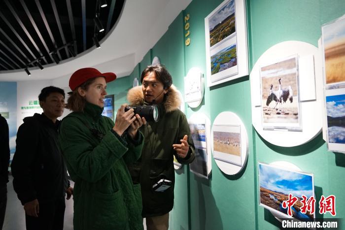 10月26日,“歪果仁”带你游青海第三季嘉宾(中)在青海隆宝滩国际重要湿地内了解中国国家一级重点保护野生动物黑颈鹤相关知识。中新网