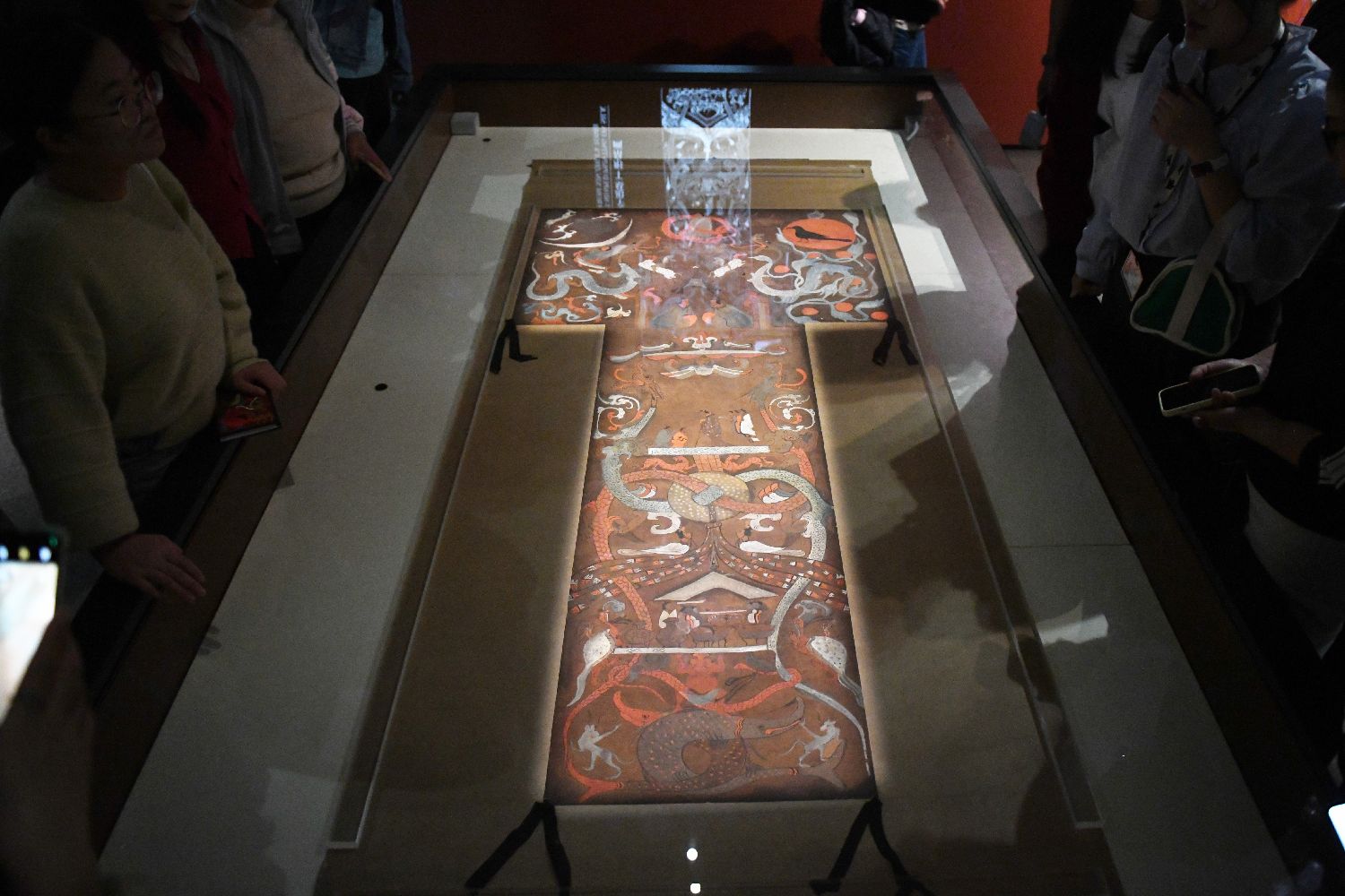 10月29日,参加“机遇中国‘非长’精彩——2024海外华文媒体高层长沙行”活动的媒体代表来到位于长沙的湖南博物院参观,感受湖南悠久厚重的历史文化。图为海外华文媒体代表与游客欣赏马王堆汉墓T形帛画。中新社