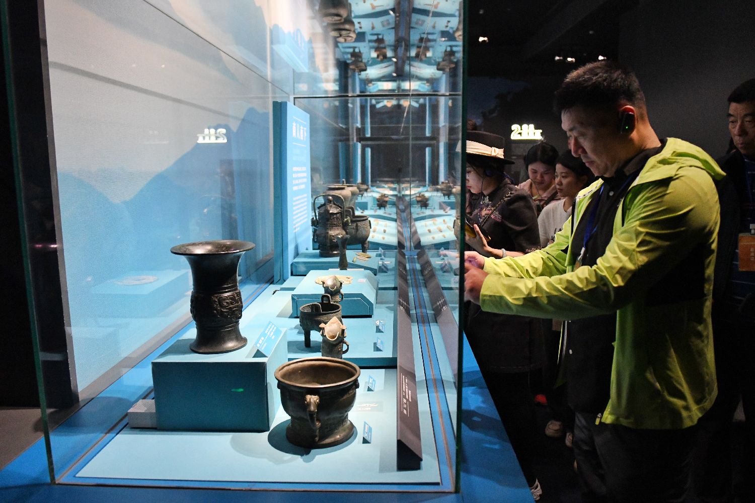 海外华文媒体代表拍摄青铜器。中新社
