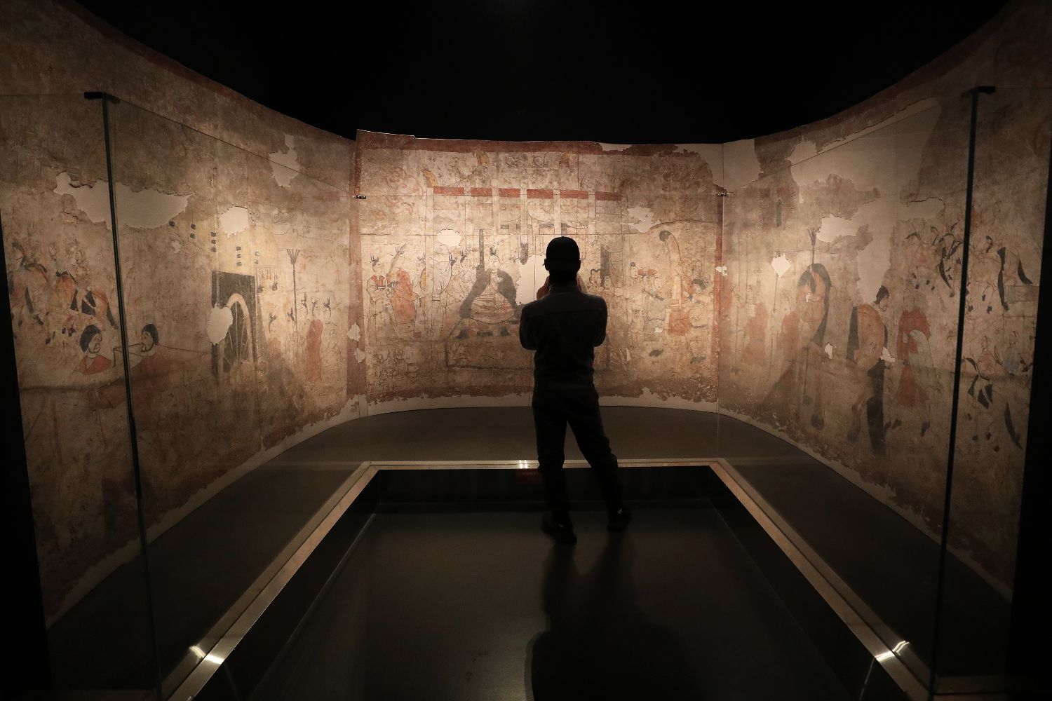 10月29日,观众在太原北齐壁画博物馆参观。