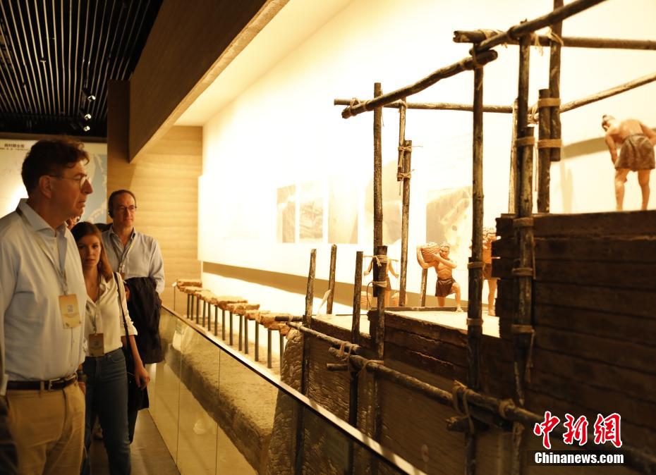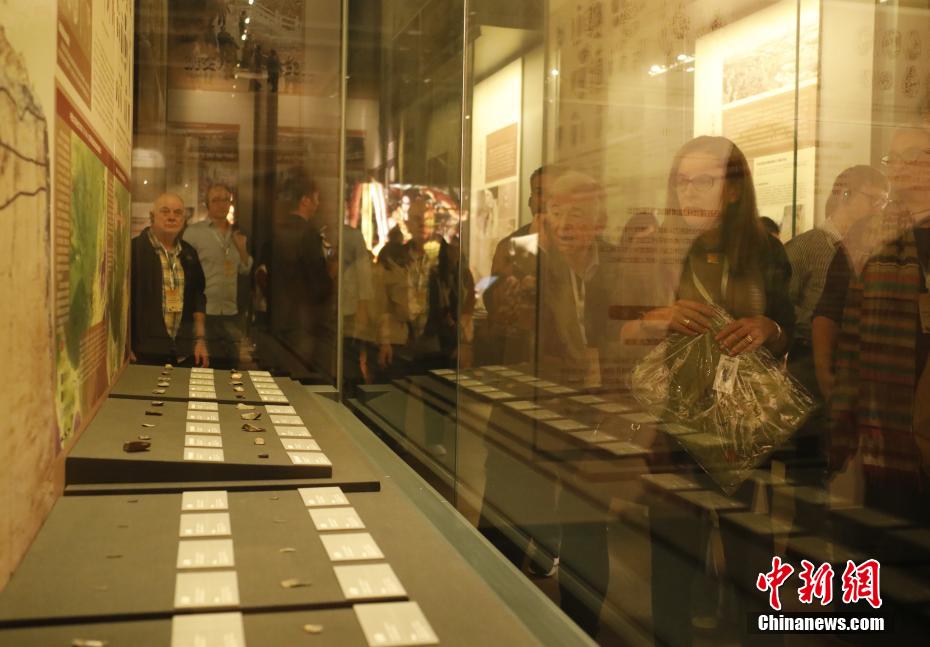 外籍专家学者在郑州市文物考古研究院考古博物馆参观。中新社