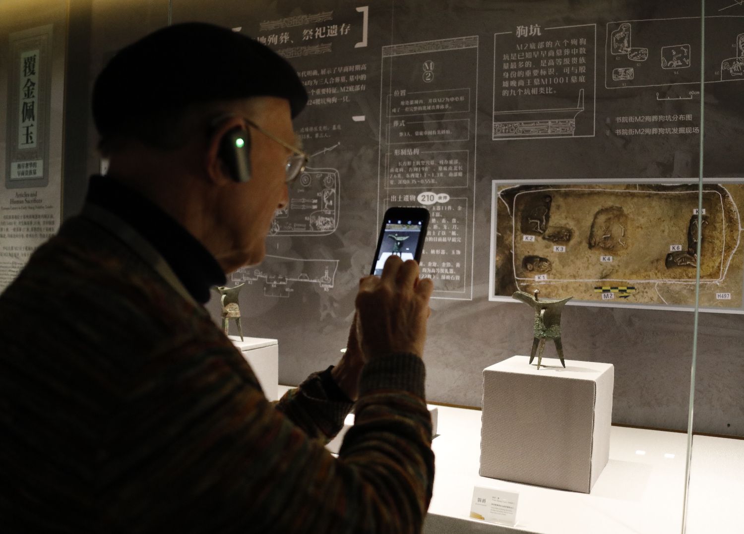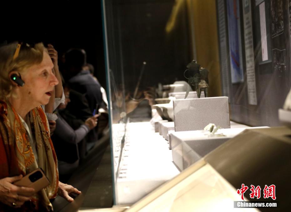外籍专家在郑州商城东城垣遗址博物馆参观青铜器。中新网