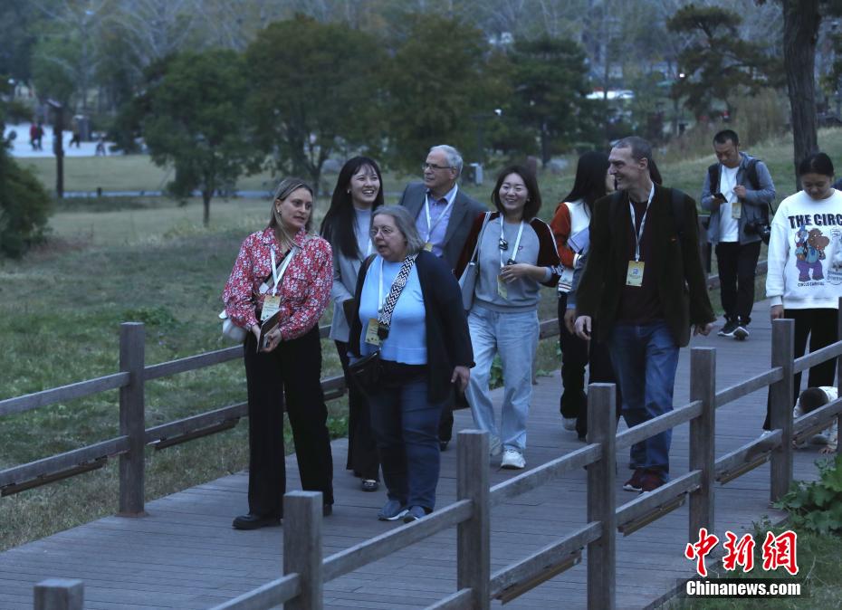 外籍专家学者在郑州商城国家考古遗址公园参观。中新网