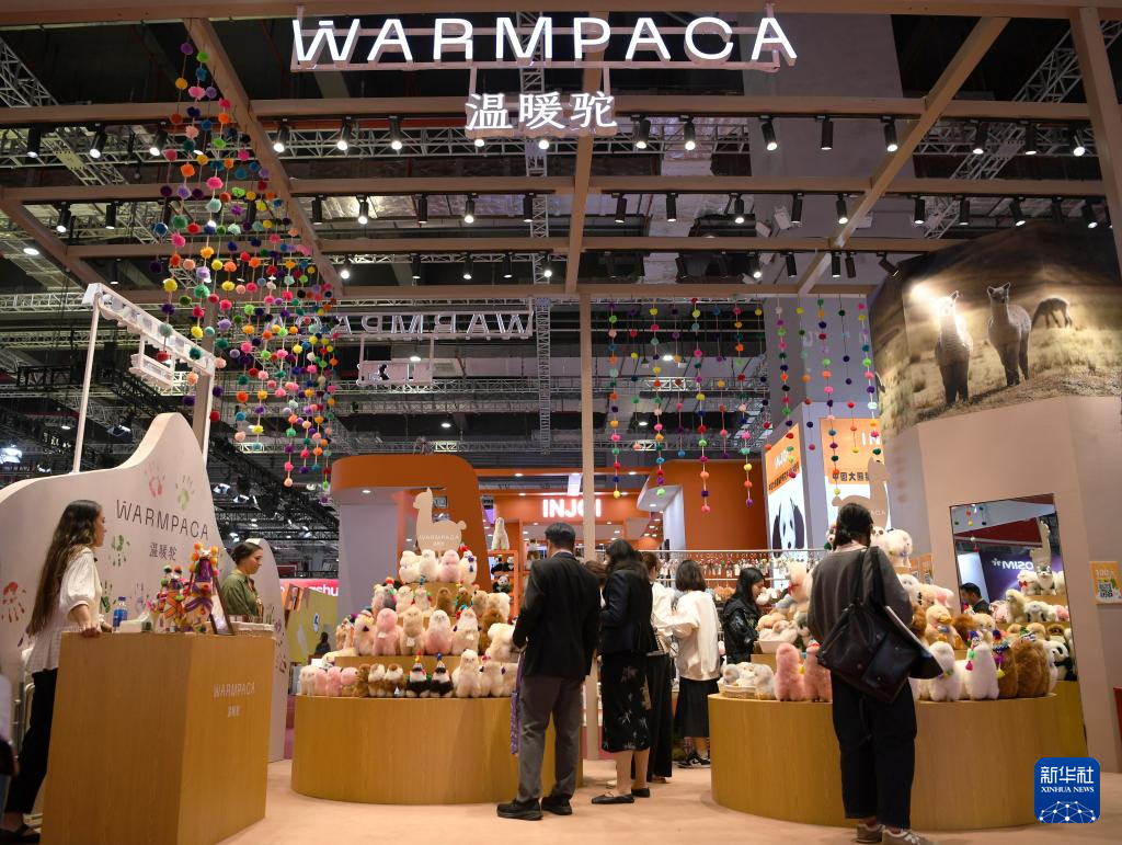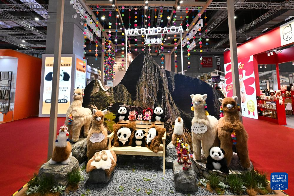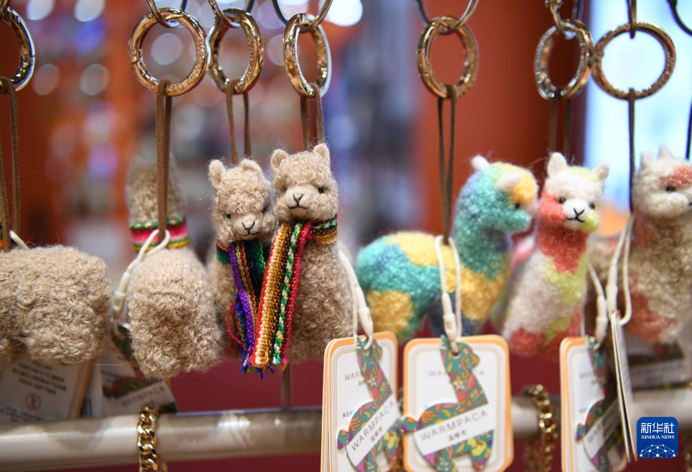 这是11月5日在上海拍摄的第七届进博会秘鲁“温暖驼”展台。