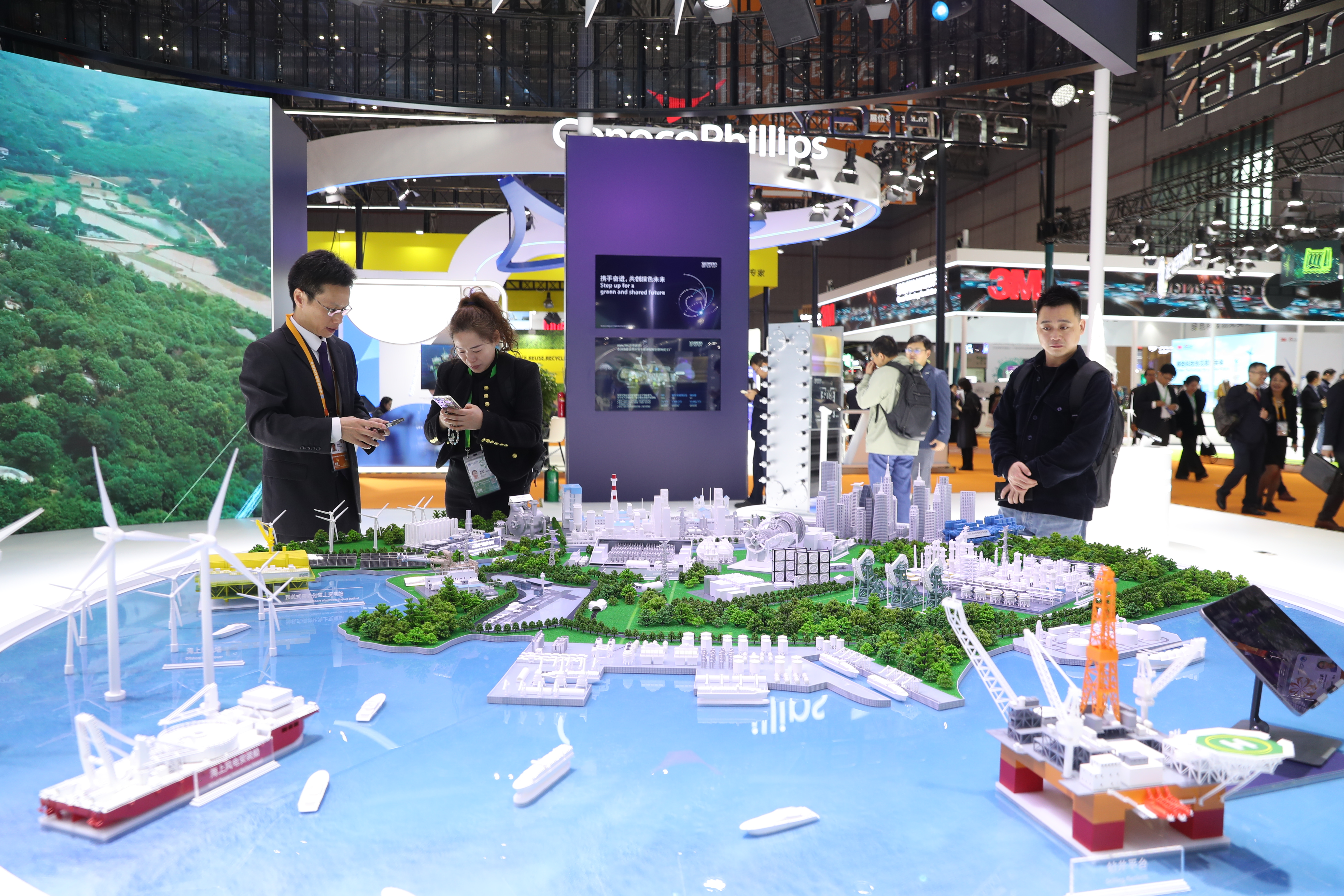 正在上海举行的第七届中国国际进口博览会(下称进博会)技术装备展区汇聚高端装备,展示前沿技术,搭建促进新材料领域创新发展的国际交流平台。图为11月7日,进博会技术装备展区,西门子展台的低碳能源系统全景展示吸引观众。中新社
