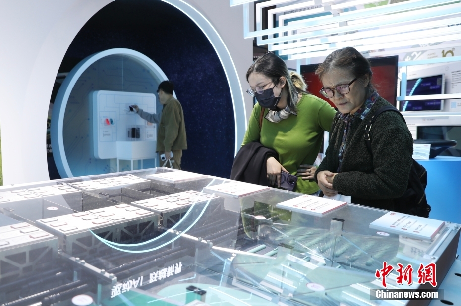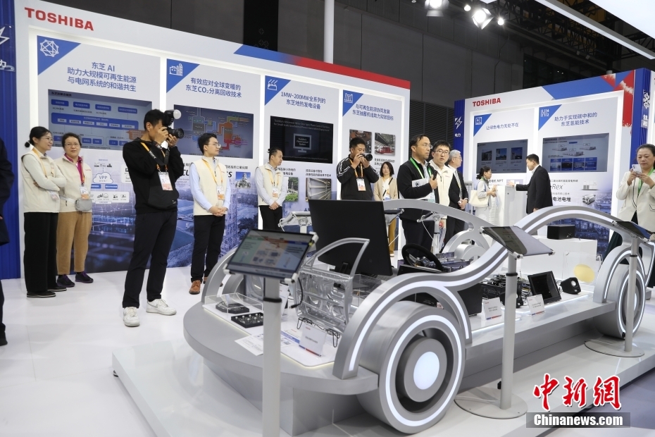 11月7日,观众在技术装备展区内东芝展台观看展品。中新网