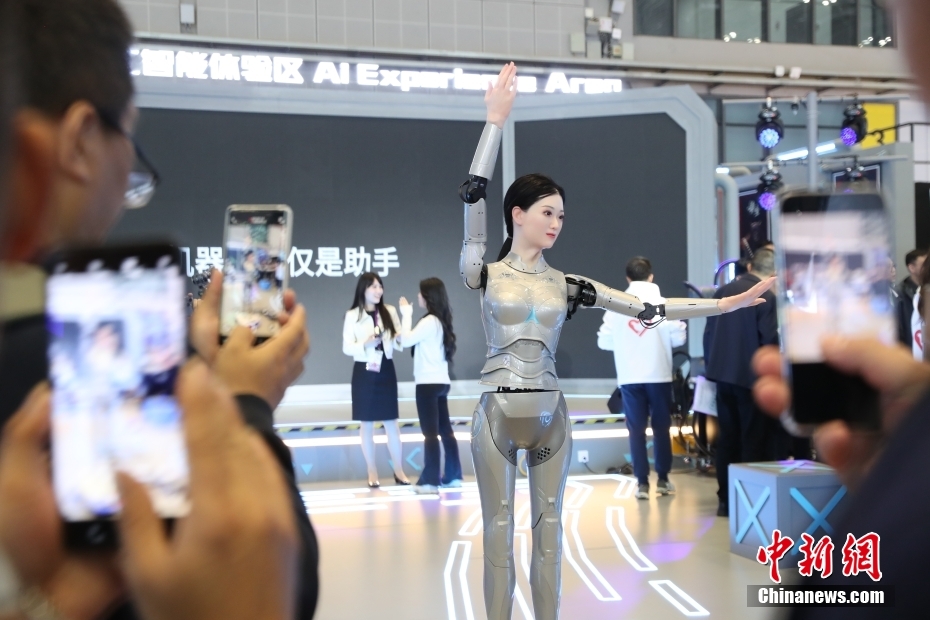 11月7日,在进博会技术装备展区内,跳舞的人形机器人吸引观众。中新网