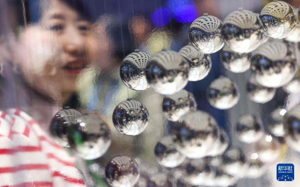 11月6日,参观者在进博会技术装备展区观看多轴立体运动演示。新华社